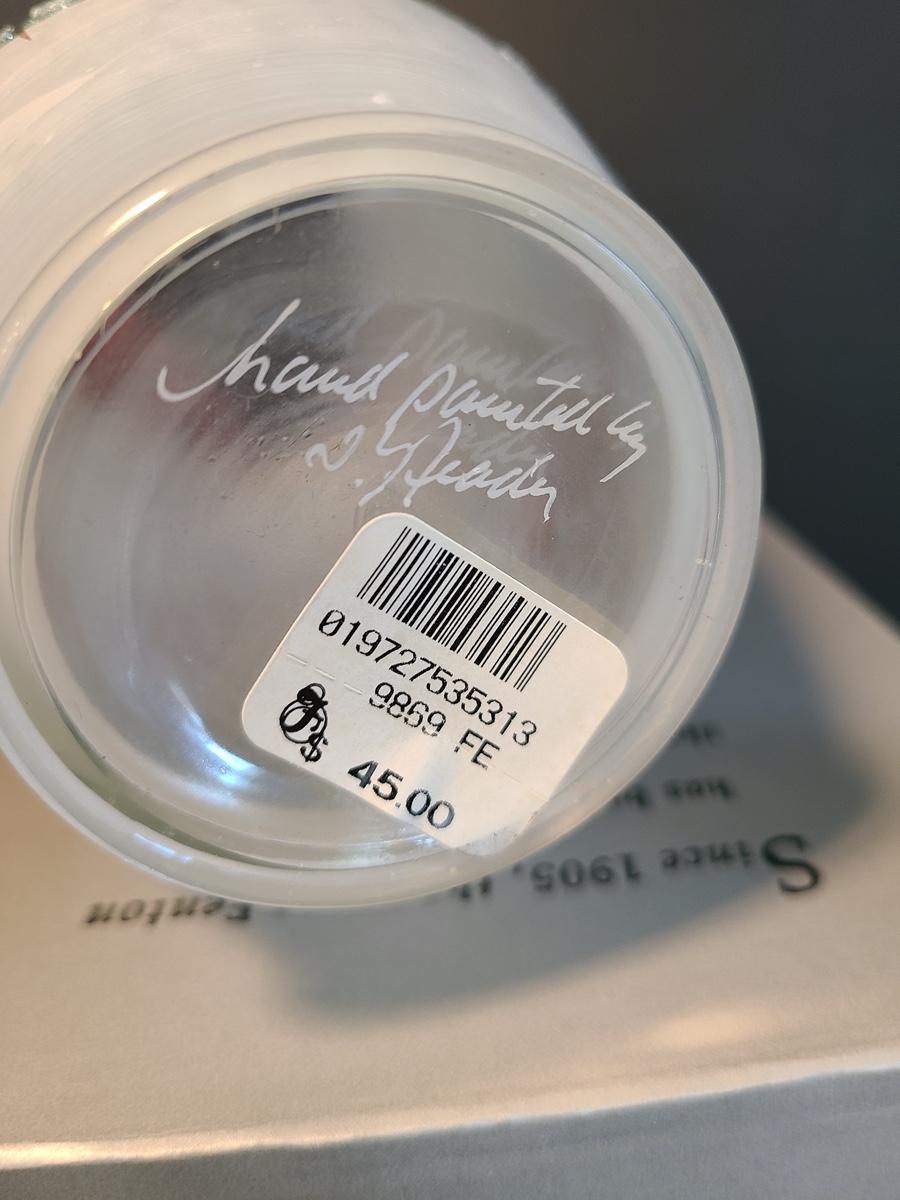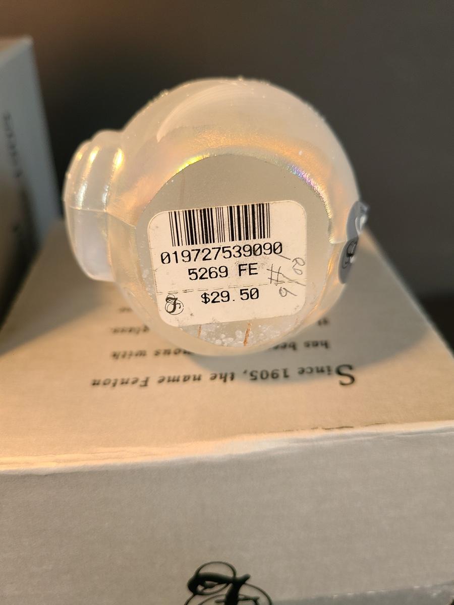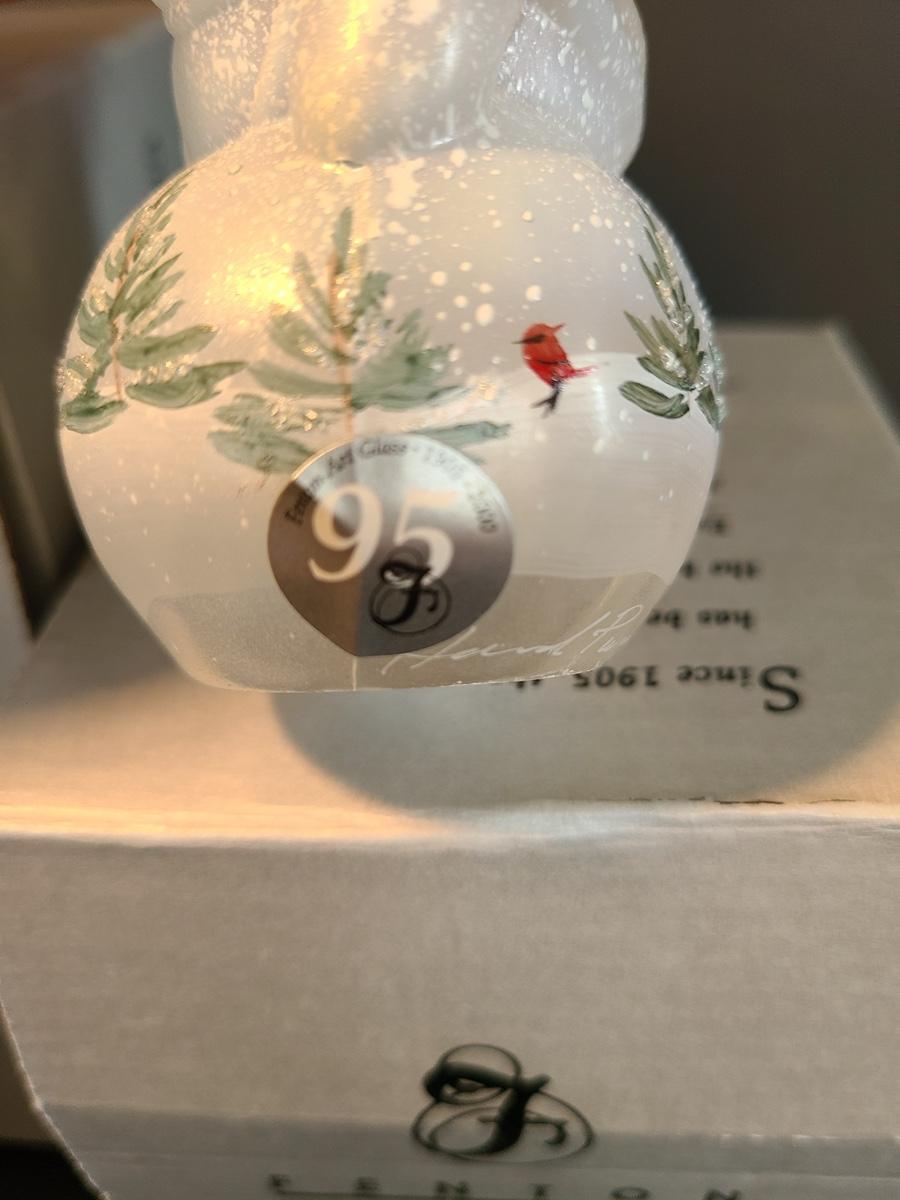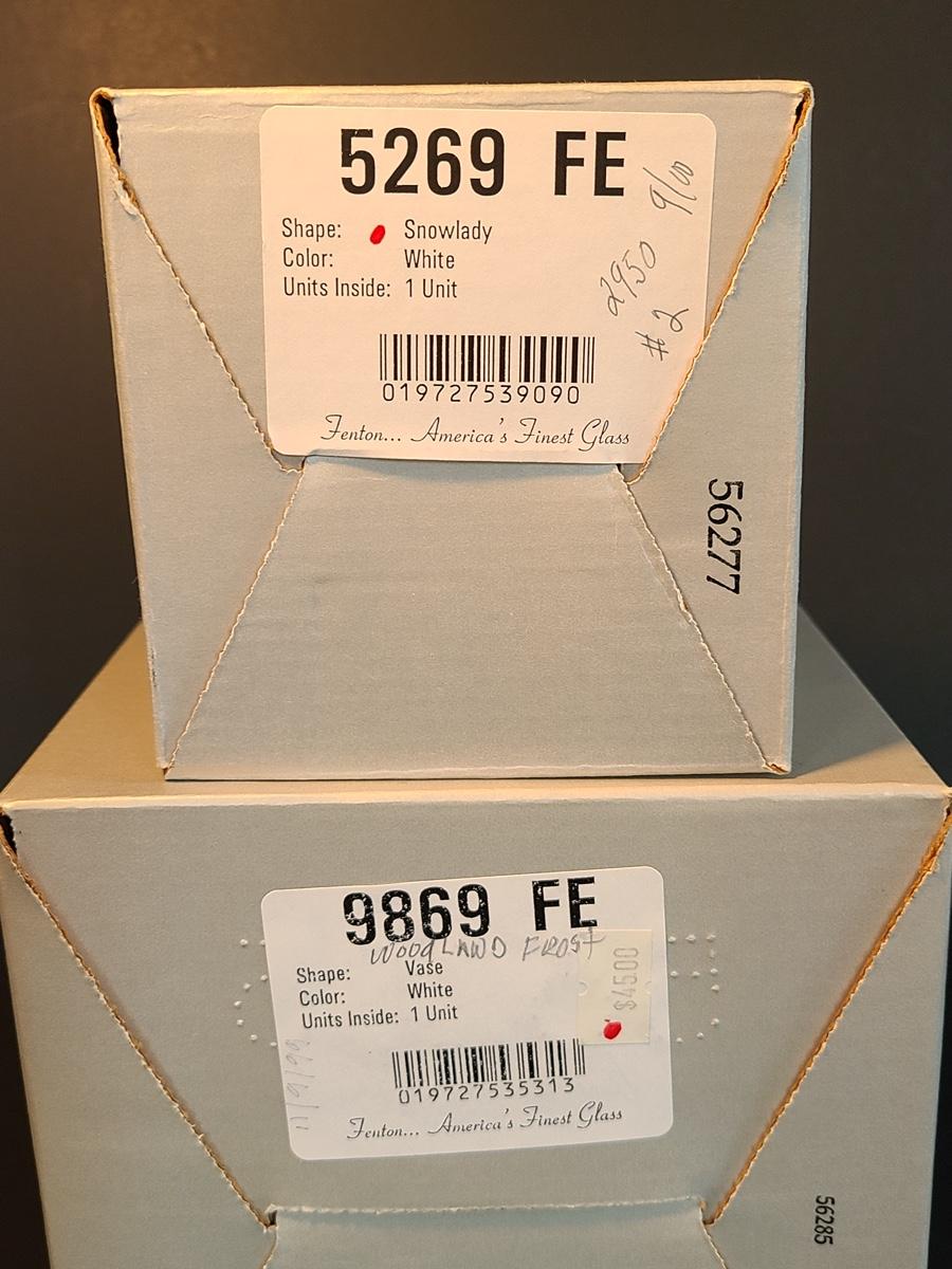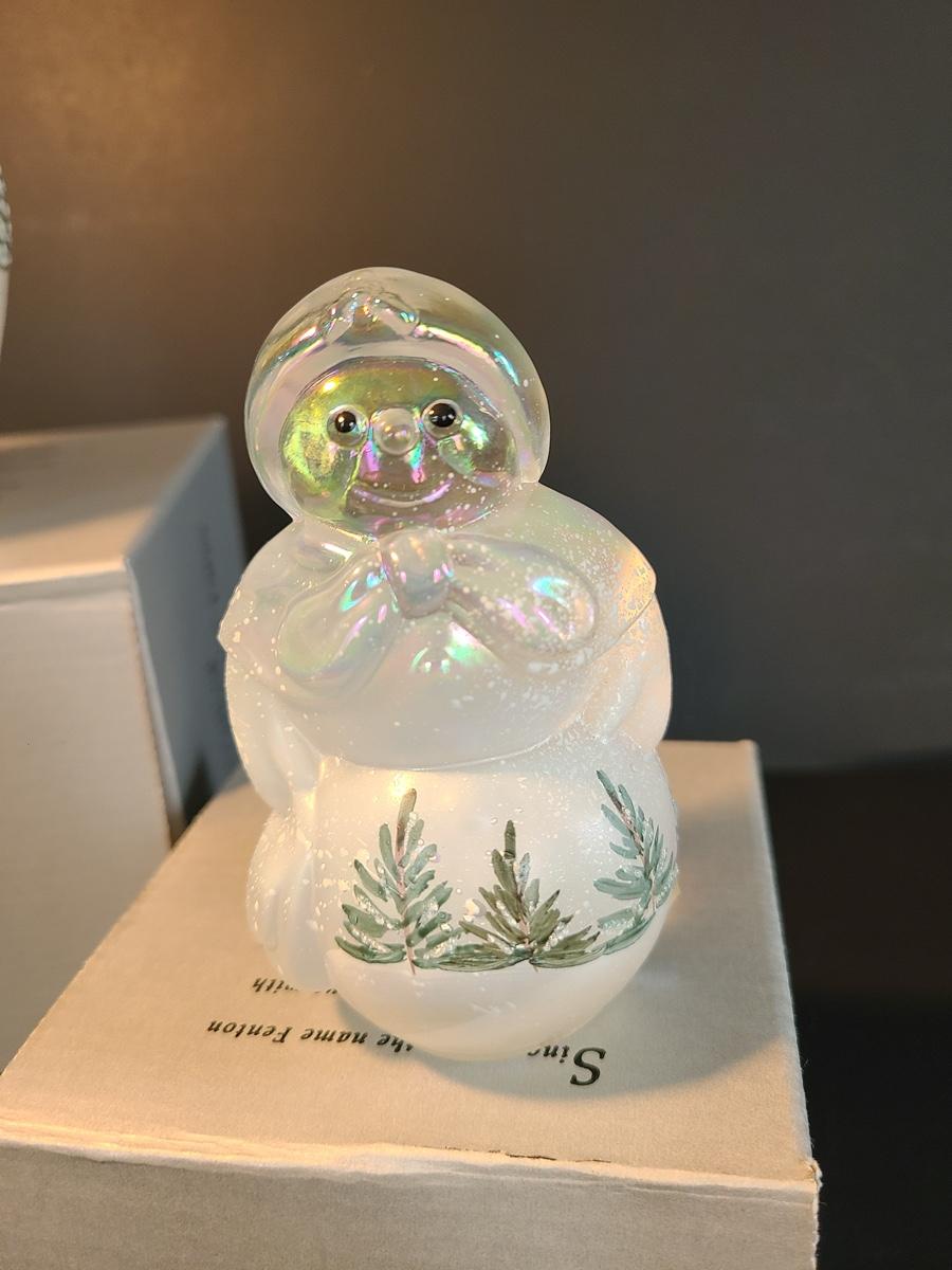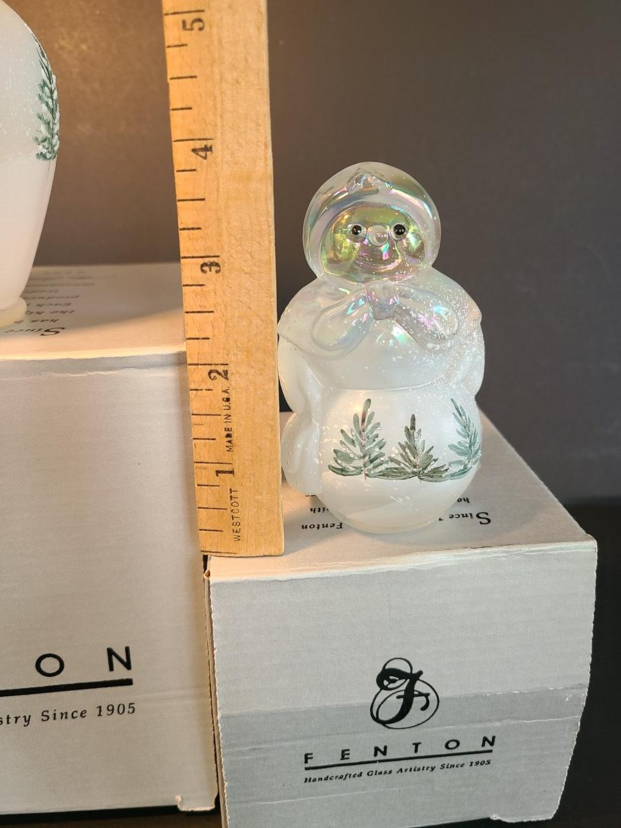Lot 174: Fenton Woodland Frost Holiday Vase and Snowlady (Evergreens/Cardinals)