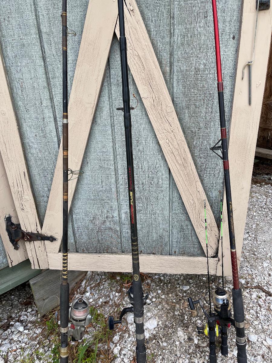 3 Spinning Rods & Reels and 2 Ice Fishing Rods & Reels.