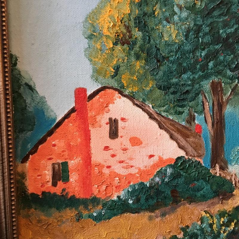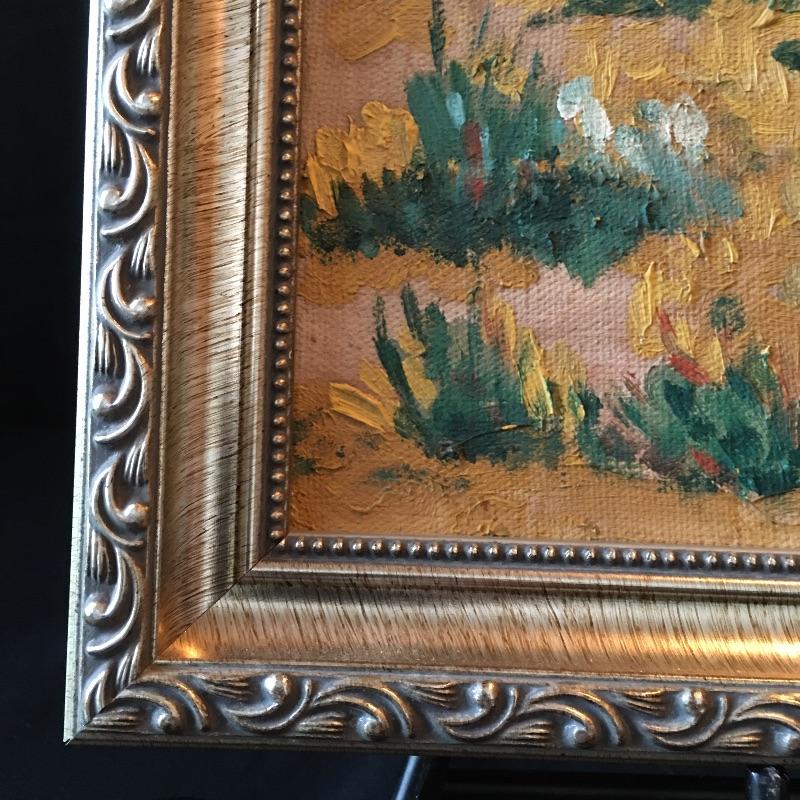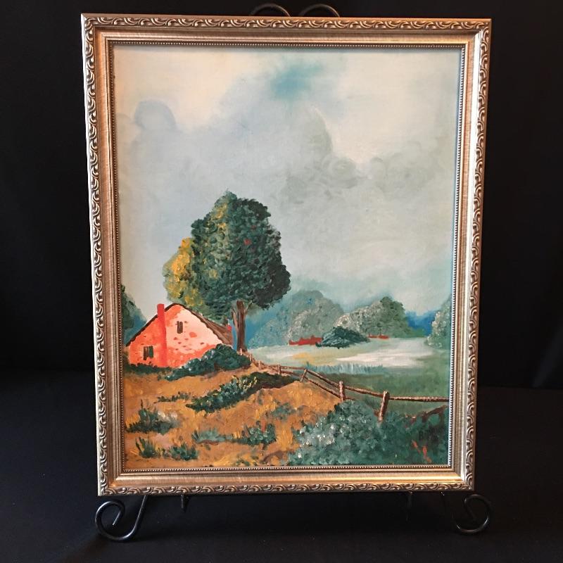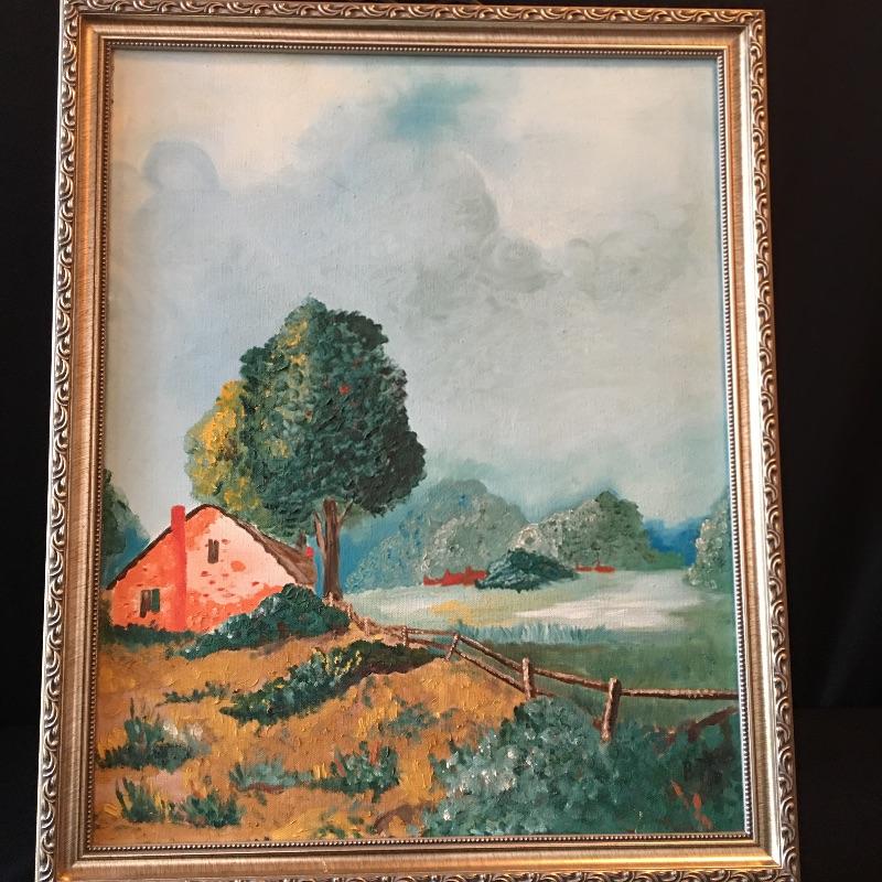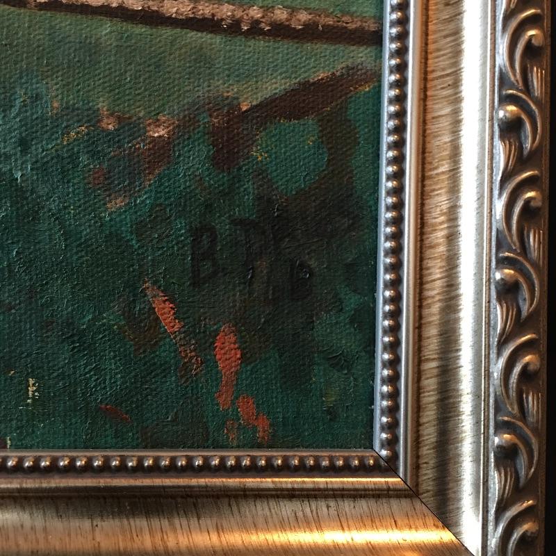Framed landscape painting on canvas signed by B. Dries. This is likely a family member as they share the same name. Frame measures 18.25” x 22”.