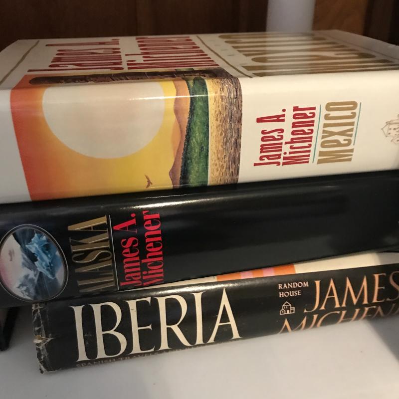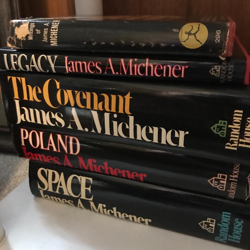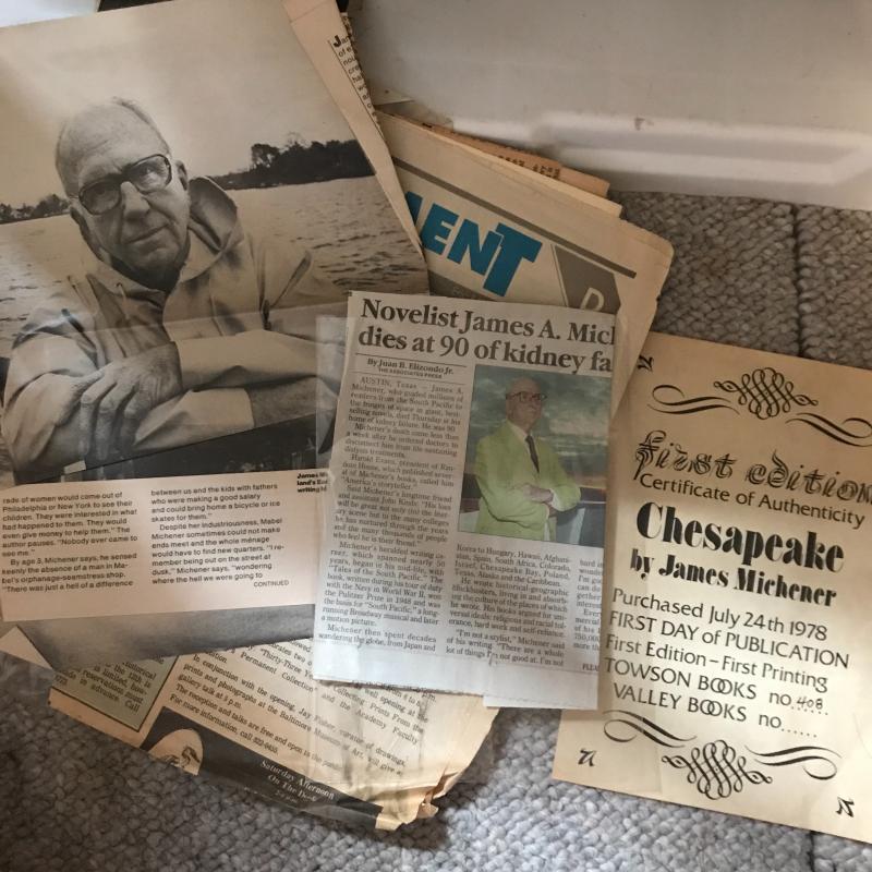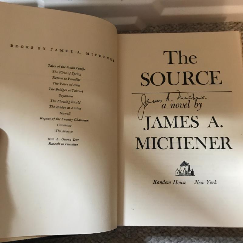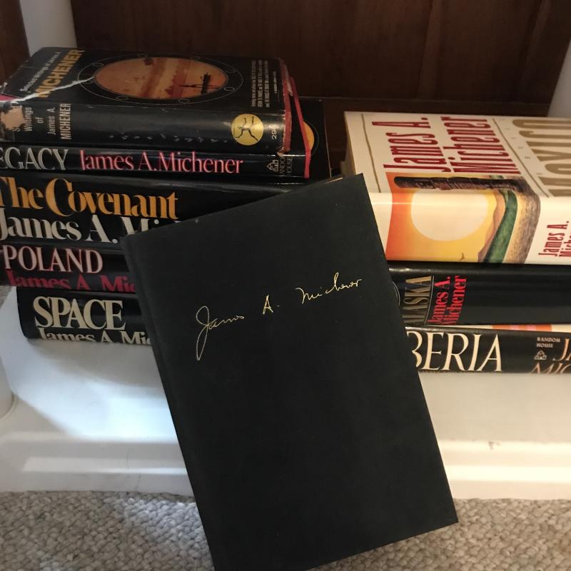 Lot of nine hard cover books by James Michener. Includes one signed edition of The Source. Lots of newspaper clippings with reviews on the author as well as a letter from him. This is a great lot for the book lover. Shipping available.