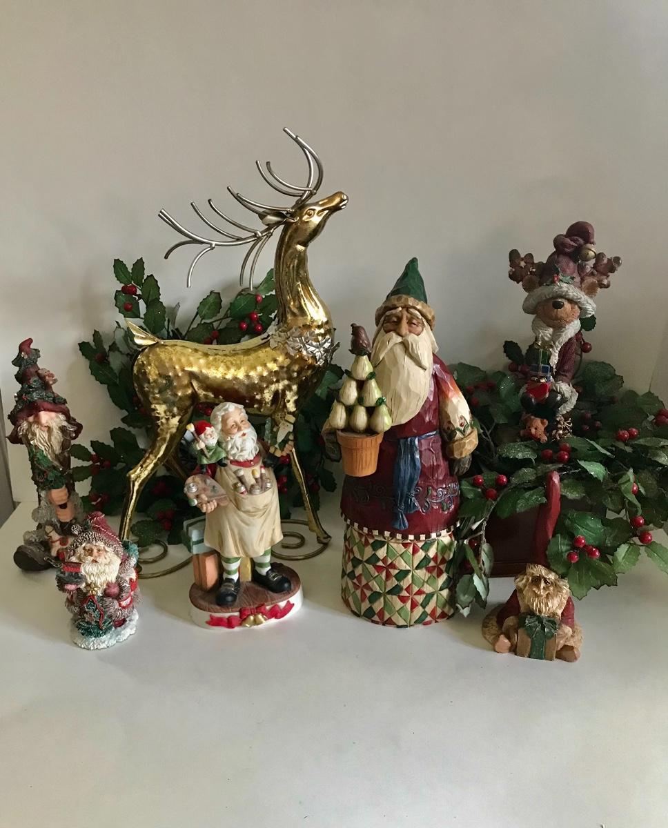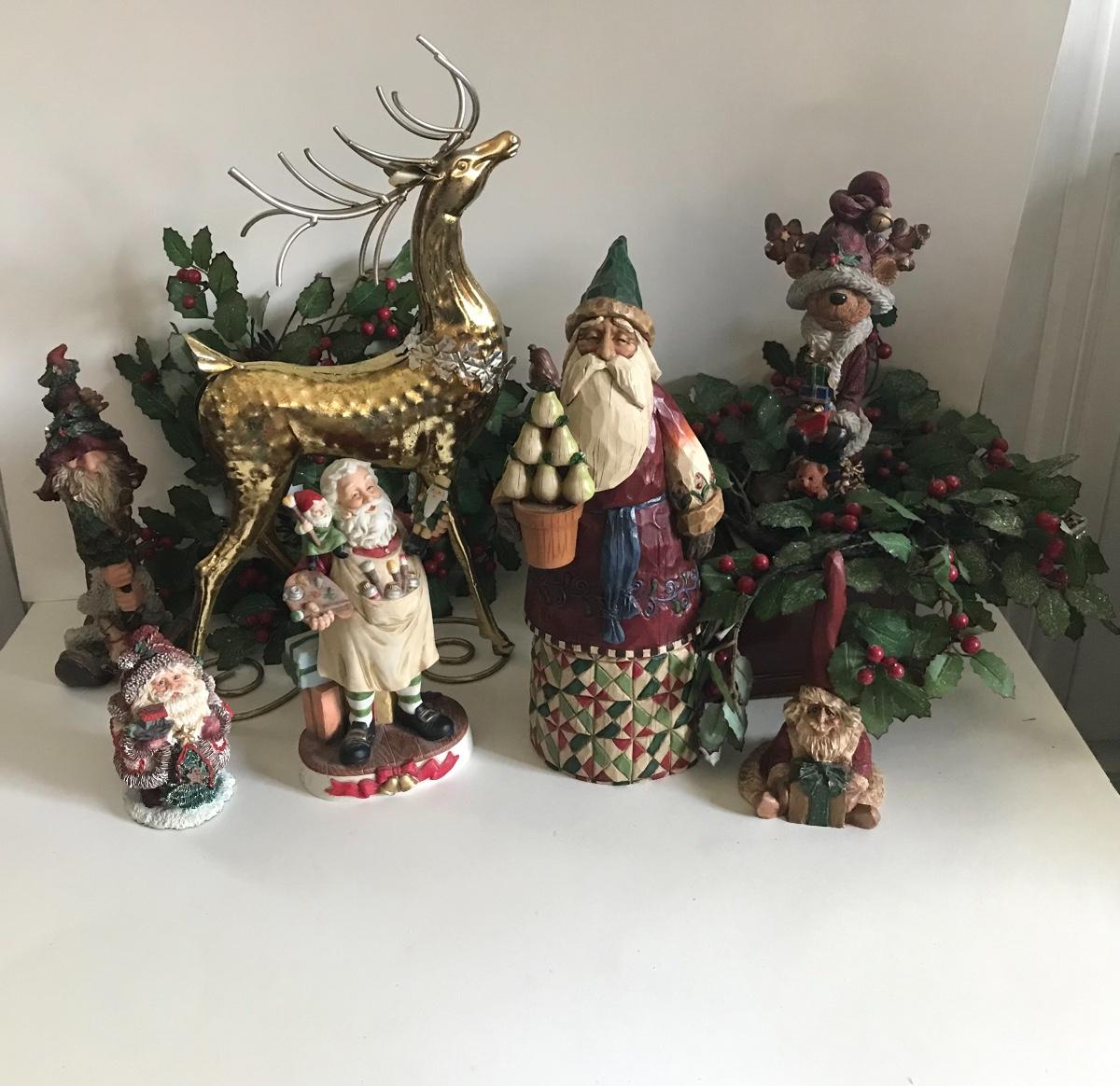 Delightful Santas, including a Jim Shore, brass reindeer, and faux holly candle rings. Please see all pictures as they are the best representation of the items. The pictures show condition, measurements if taken, and what is included in the lot. Due to the large amount that we photograph and the time frame, we are not always able to take measurements. All items unless noted, are pre-owned and have been used. If you purchased furniture, you must bring help. We do not allow one person to carry large furniture out on their own. Bring help, tools and a truck for the safety of our client’s homes, and your personal safety. Company policy. Thank you.