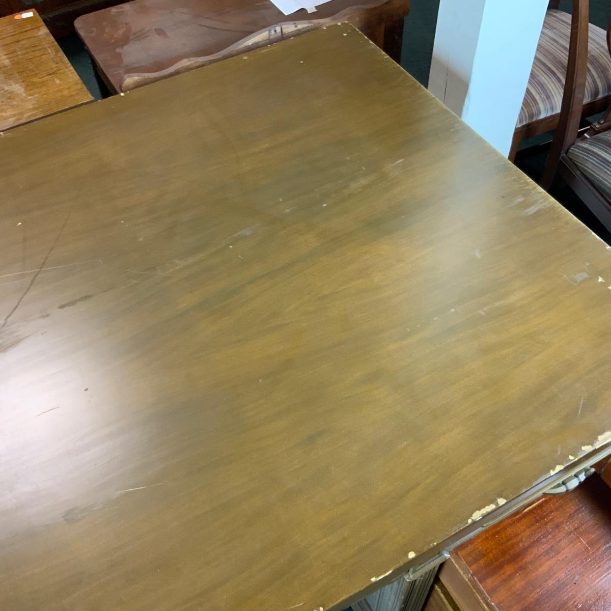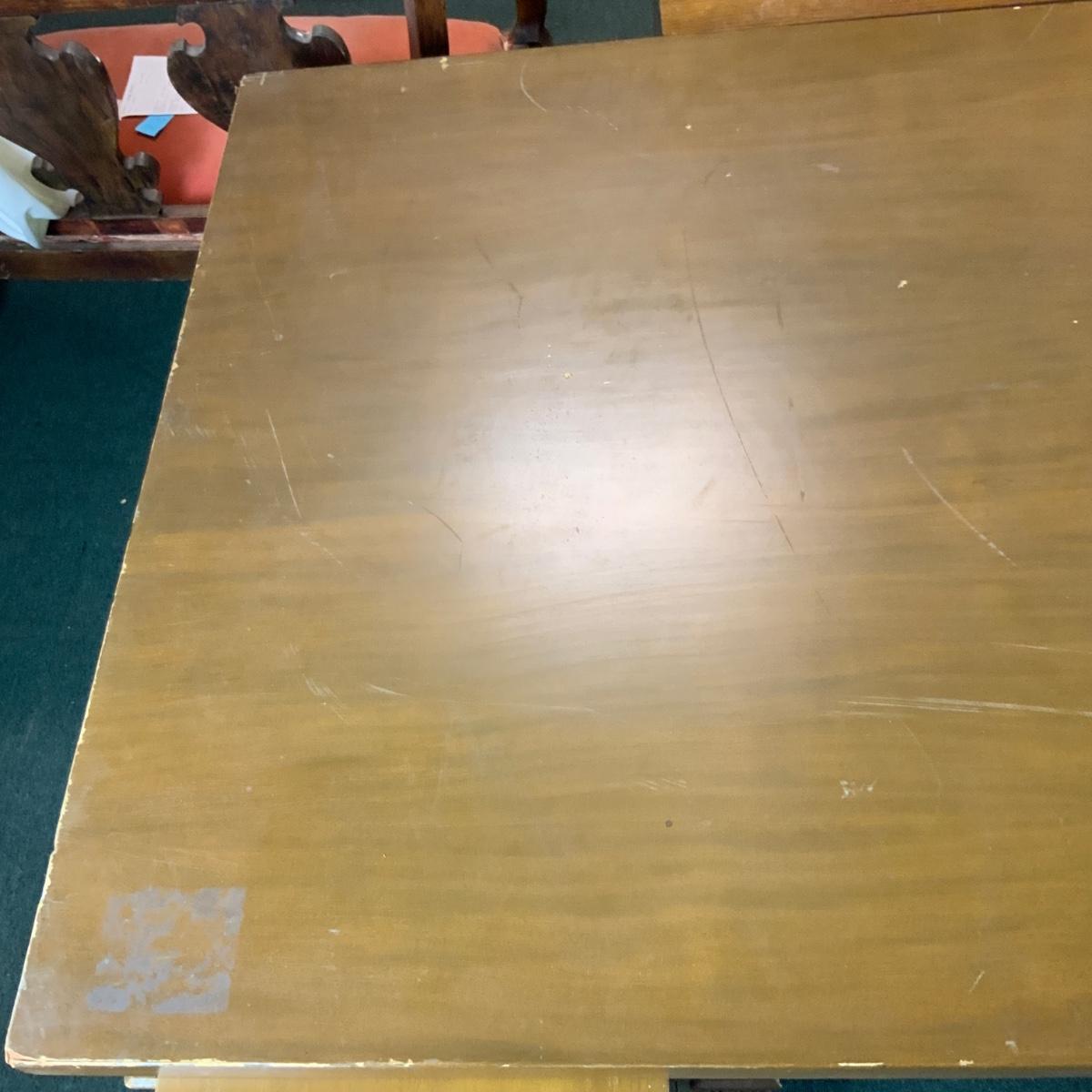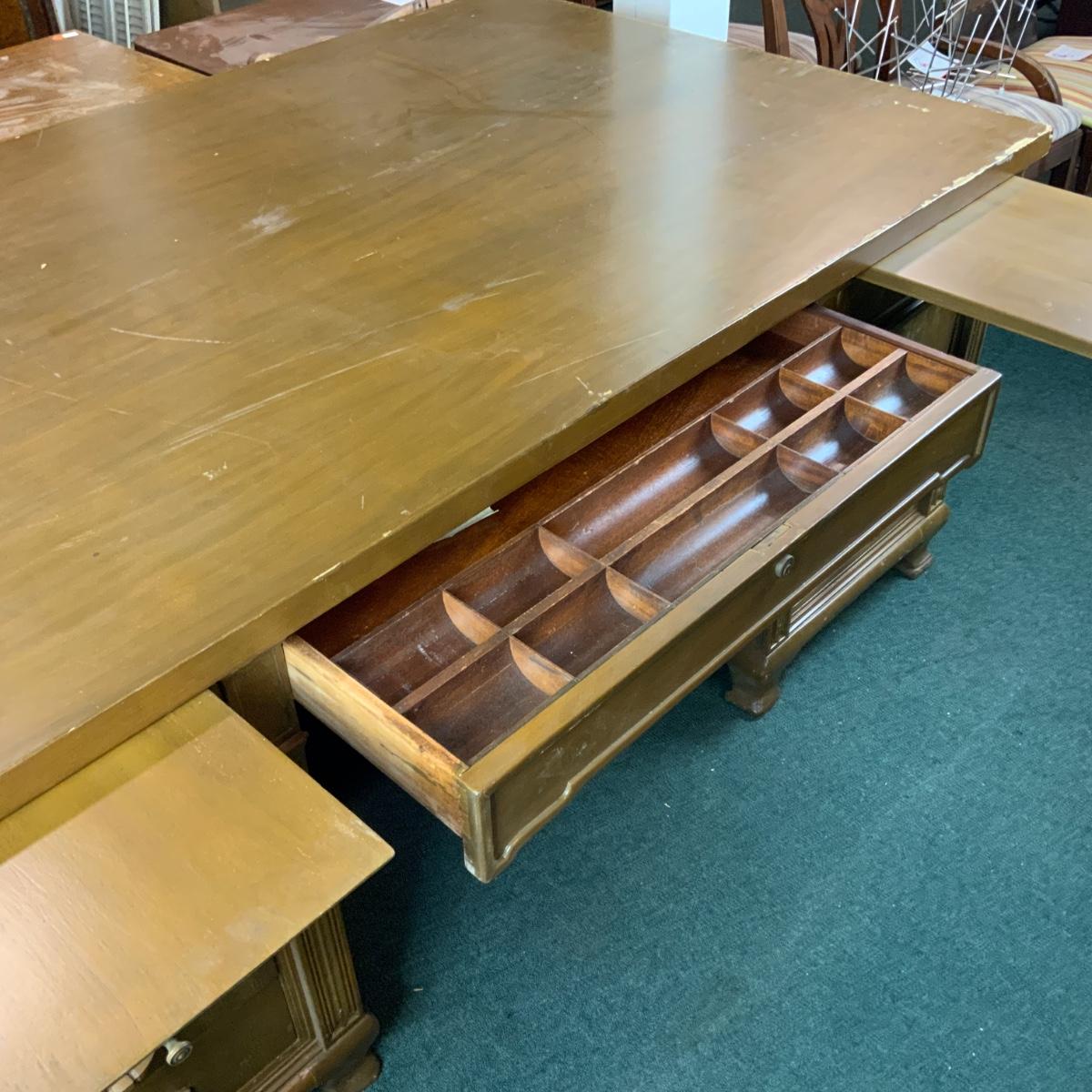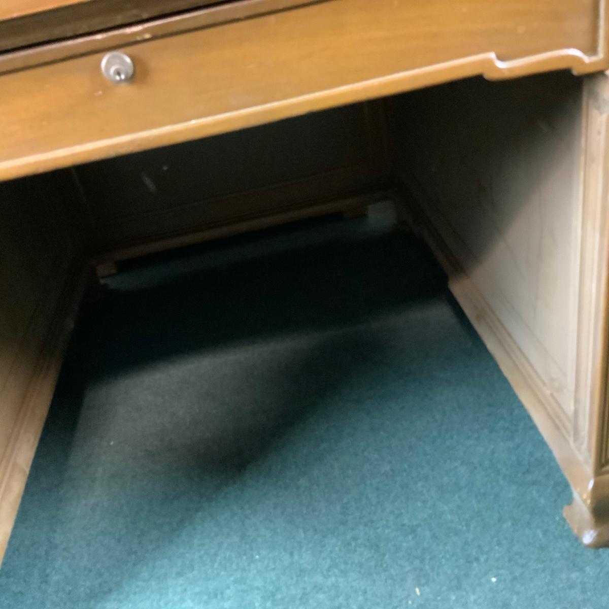 Massive Dolton Dunton Desk with Privacy Panel. An impressive desk for an impressive person: you! //::\\ Please see photos for details and condition. No attempt has been made to hide any imperfections. All items listed in this auction are warehouse items, and need to be cleaned. A majority of the items need restoration as well. All items are sold AS IS and WITHOUT GUARANTEE. If you are uncertain about an item, DO NOT BID. Due to the nature of this online auction in-person inspection is HIGHLY recommended. All Sales are FINAL. Pick Up Times are FIRM. Please confirm with your own schedule that you can pick up in the scheduled times listed in the Terms and Conditions. Any questions please message the auctioneer. DO NOT Contact The Harp Gallery.