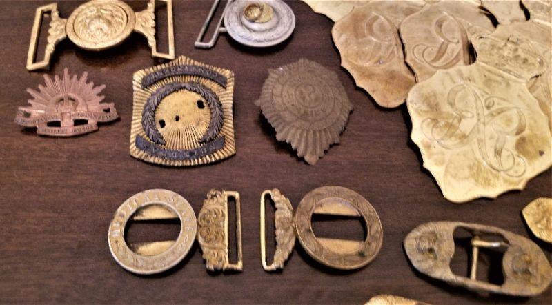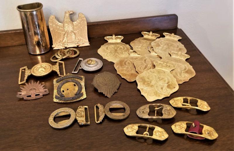 Lot #174 MILITARIA lot - Belt Buckles, badges, hat decorations, etc.