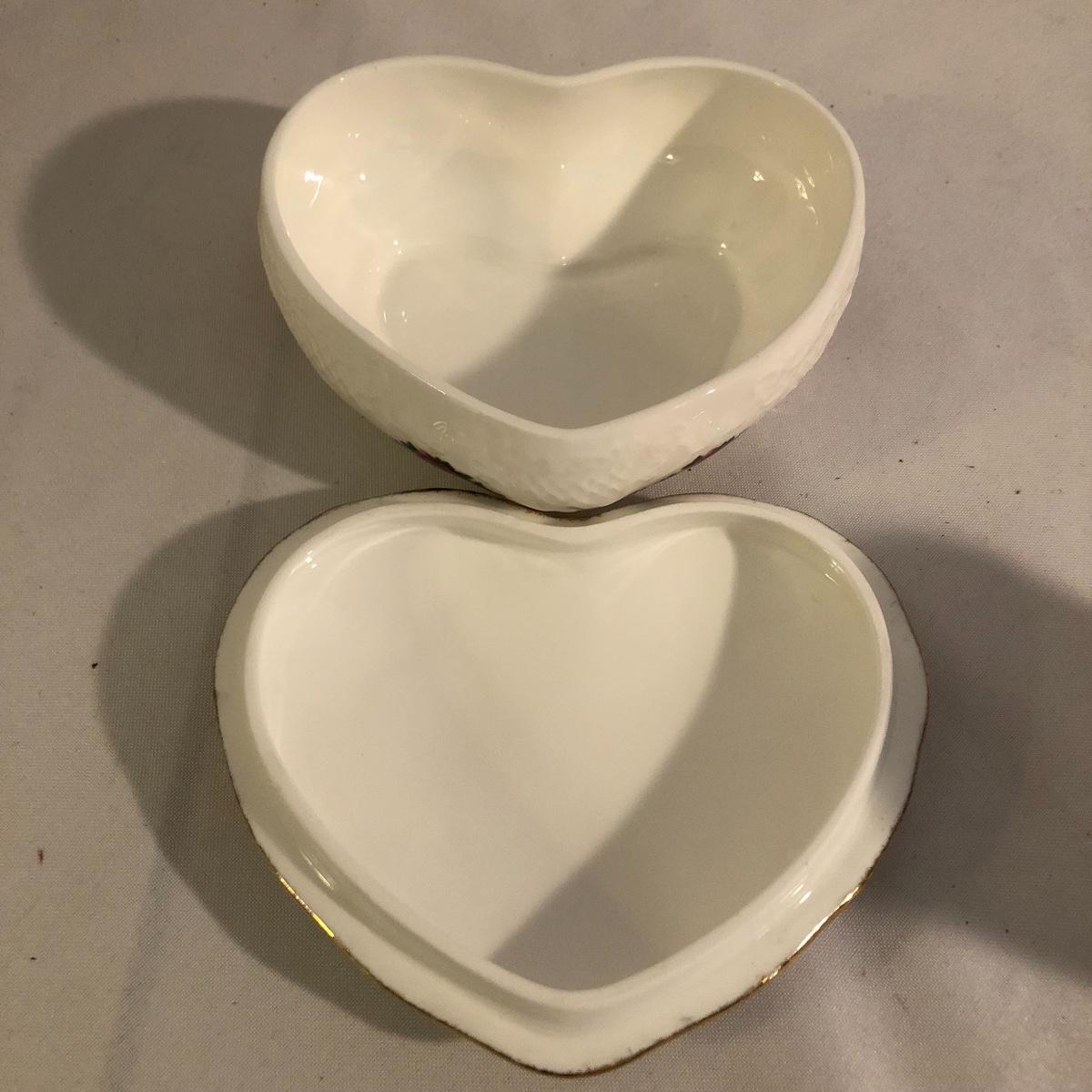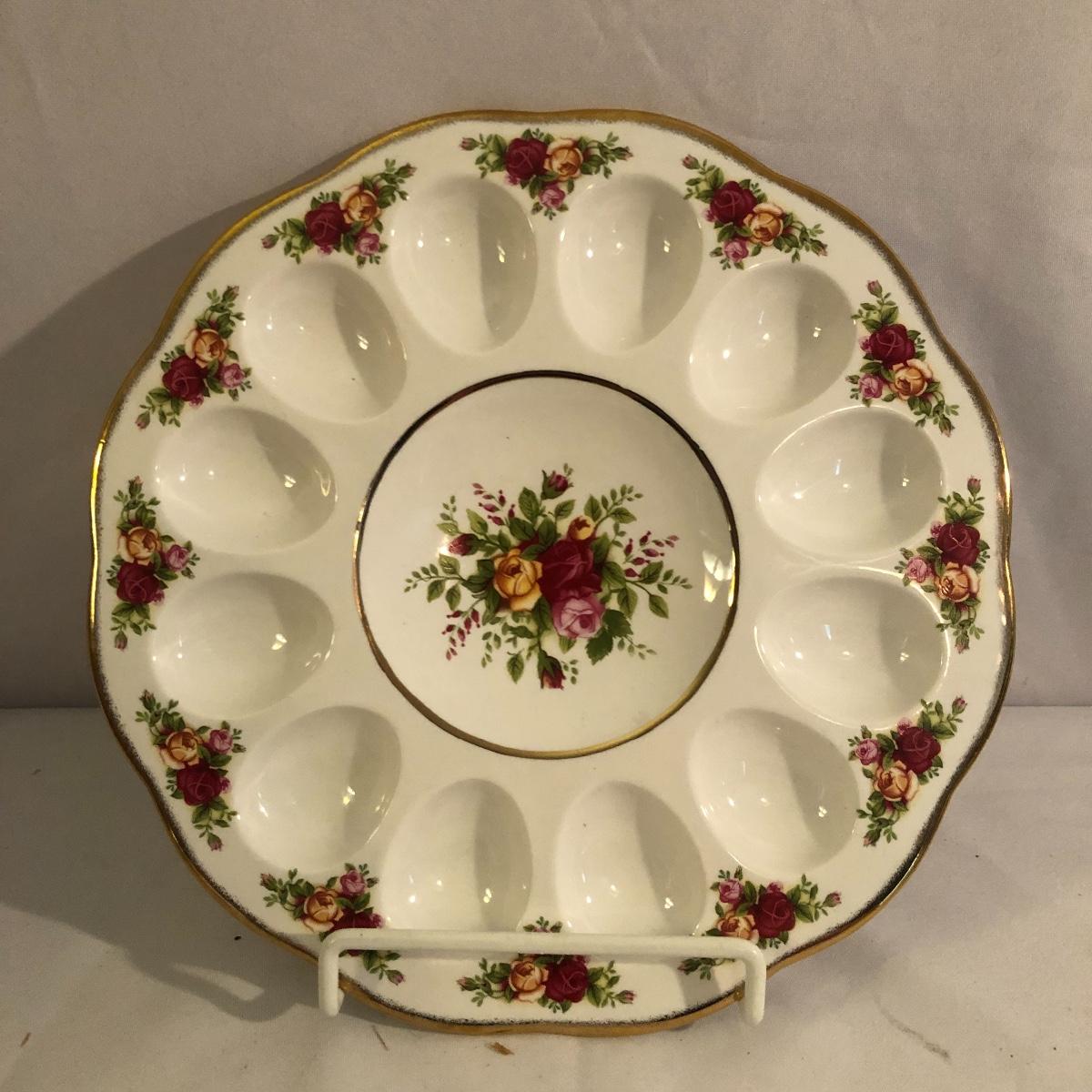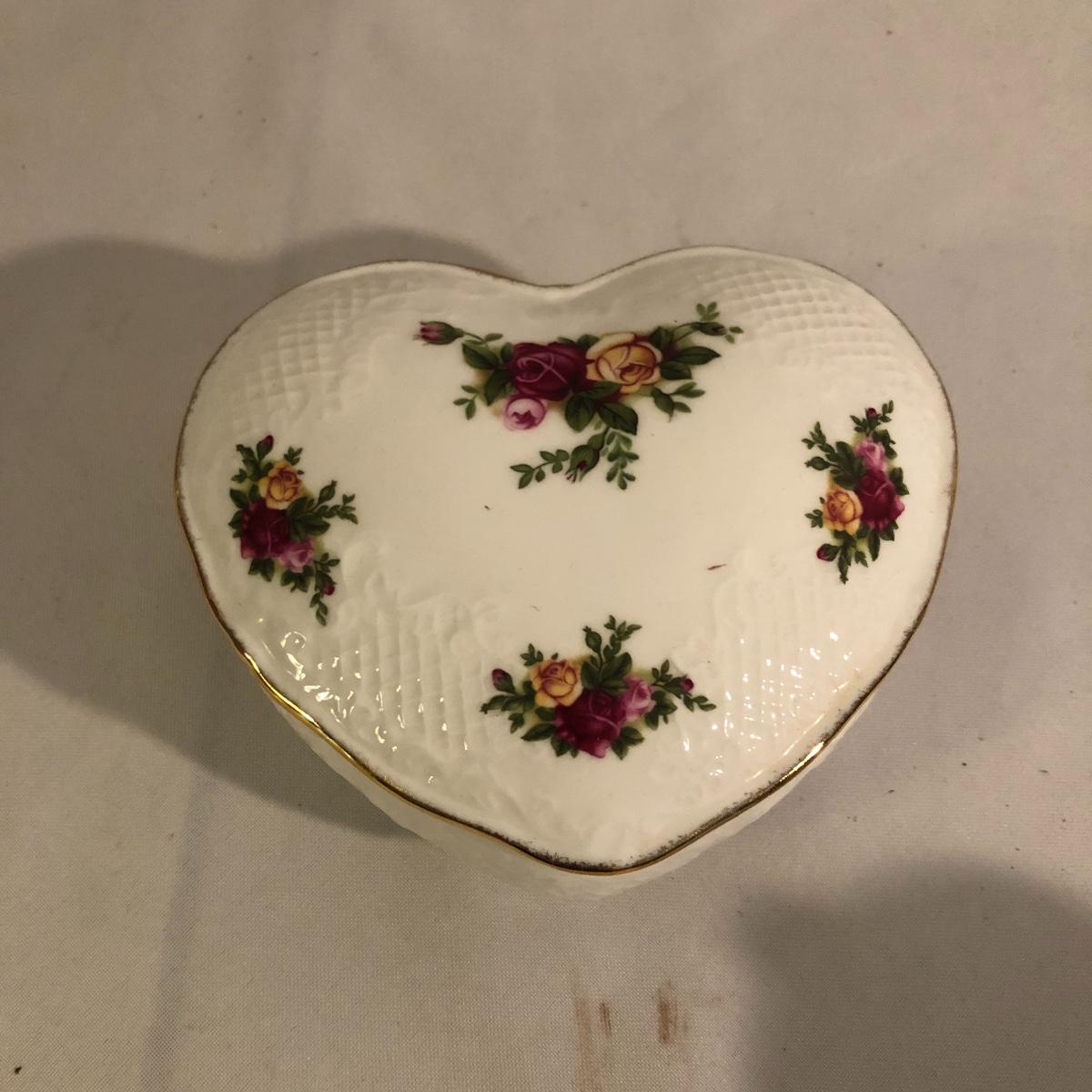This lot is great for the person who’s is trying to add to their Royal Albert china collection. The lot includes a deviled egg plate, two mugs, a cup and saucer, mini vase, covered heart shaped bowl and a cardboard box all in the Old Country Rose pattern.