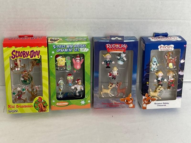 Lot #174 Scooby Doo Spongebob Squarepants and Rudolph Miniature Ornament Sets