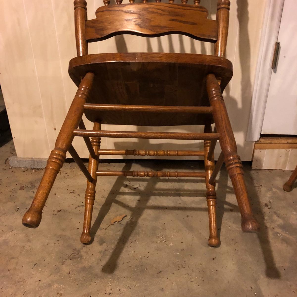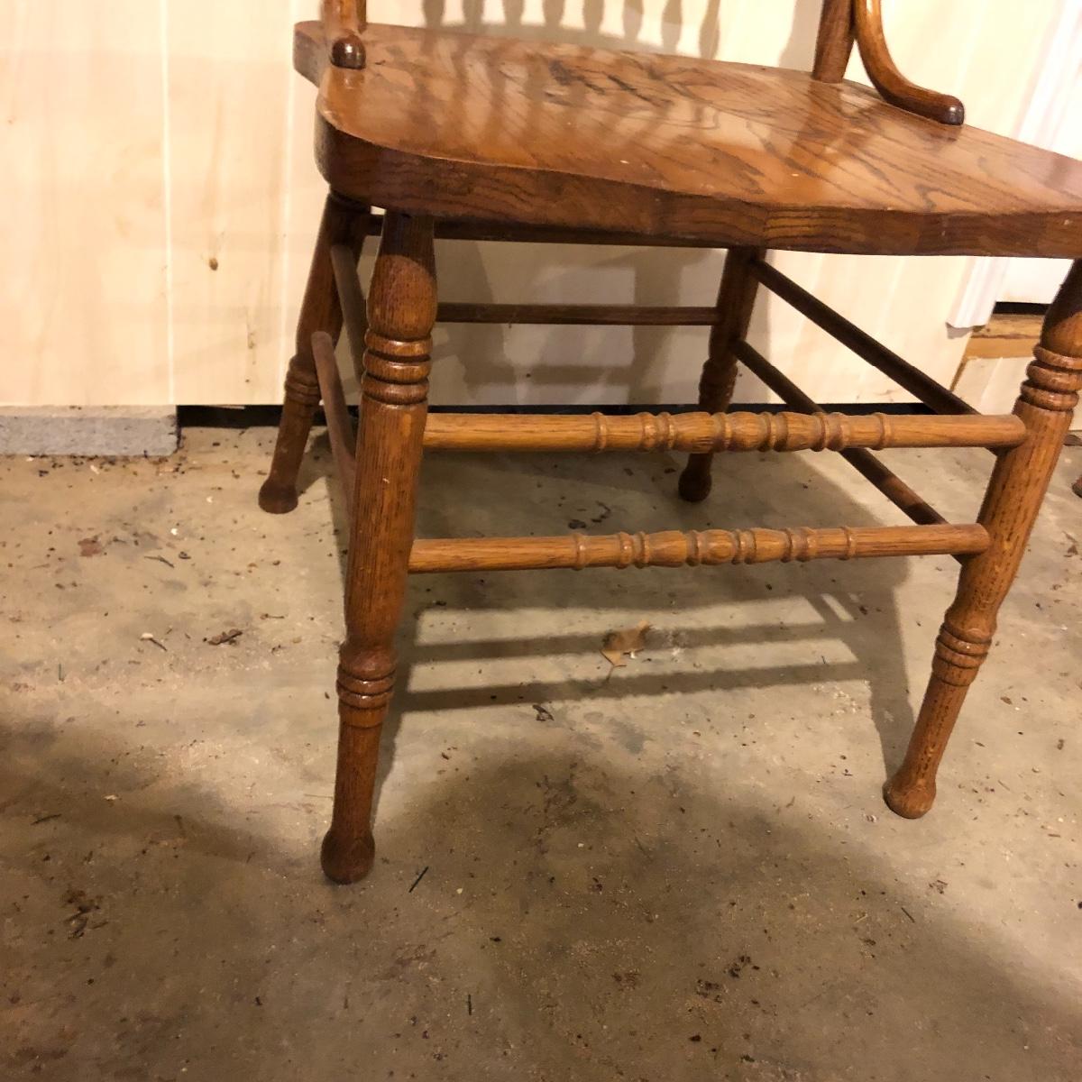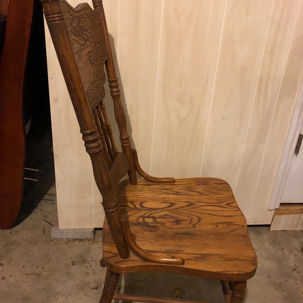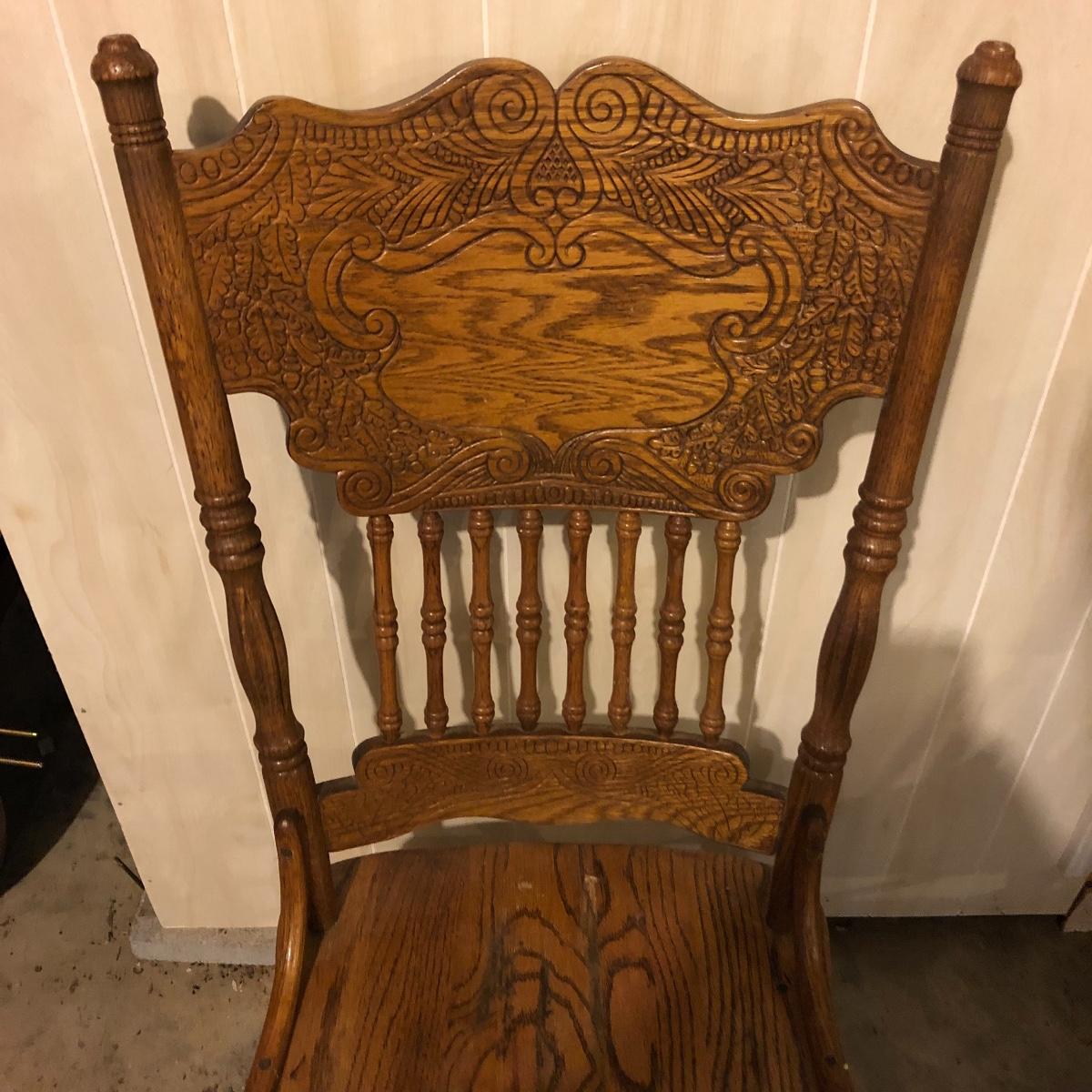 This matching set of six solid wood chairs match the dining table in Lot 118. A lot of details can be found in these beautiful chairs with intricate carvings above and below the partial spindle backs. One chair has some scuff marks on the seat that some sanding would soon fix.