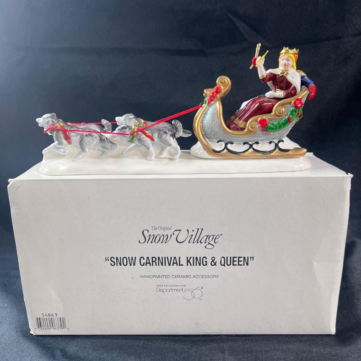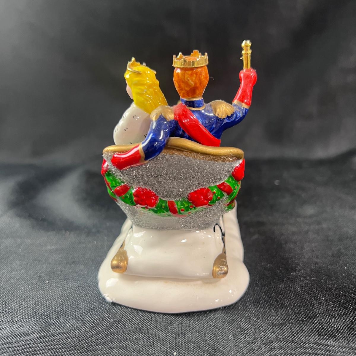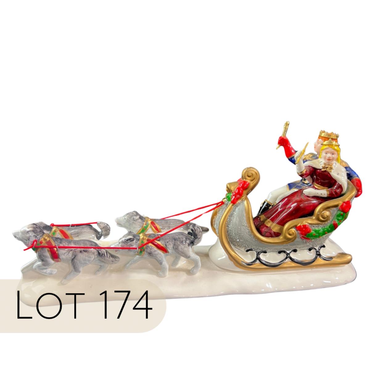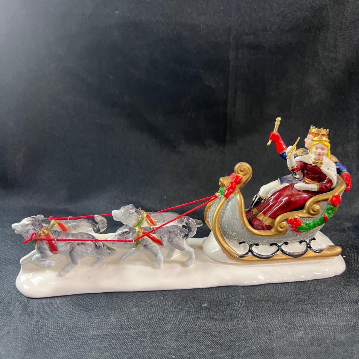 This Department 56 Snow Carnival King & Queen are living their best lives, being pulled by incredibly strong wolves. The queen’s scepter was attached to the wrong hand, and has broken. Please see photos for details and condition. ::: Shipping is available on this lot. If you require shipping you must let us know at the close of the auction. We will coordinate with you after the item has been won. Shipping fees will include insurance up to or exceeding the value of all items being mailed. If you have any questions regarding this lot please contact the auctioneer either via this website, by direct email or by phone. PICK UP TIMES and other important information can be found in the TERMS and DESCRIPTION of the auction. Please take a look for pertinent information. Thanks! Any condition statement is given as a courtesy to a client, is an opinion, and should not be treated as a statement of fact. Reference to condition written, oral or within a condition report shall not be regarded as a full account of condition and may not include all defects, alterations, or restorations. Absence of a condition report does not imply a lot is flawless or lacking imperfections or damage. Katherine’s Auction & Appraisal Service shall have no responsibility for any error or omission. Returns shall not be accepted on the basis of condition.