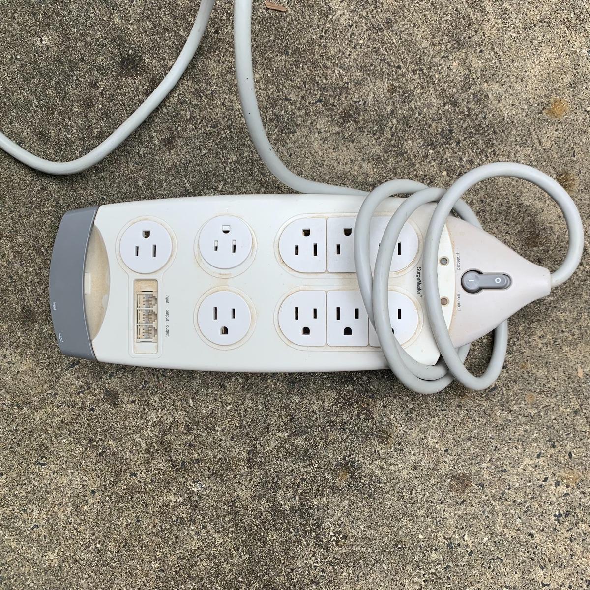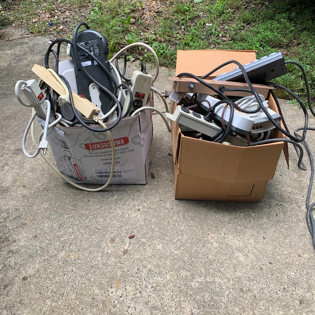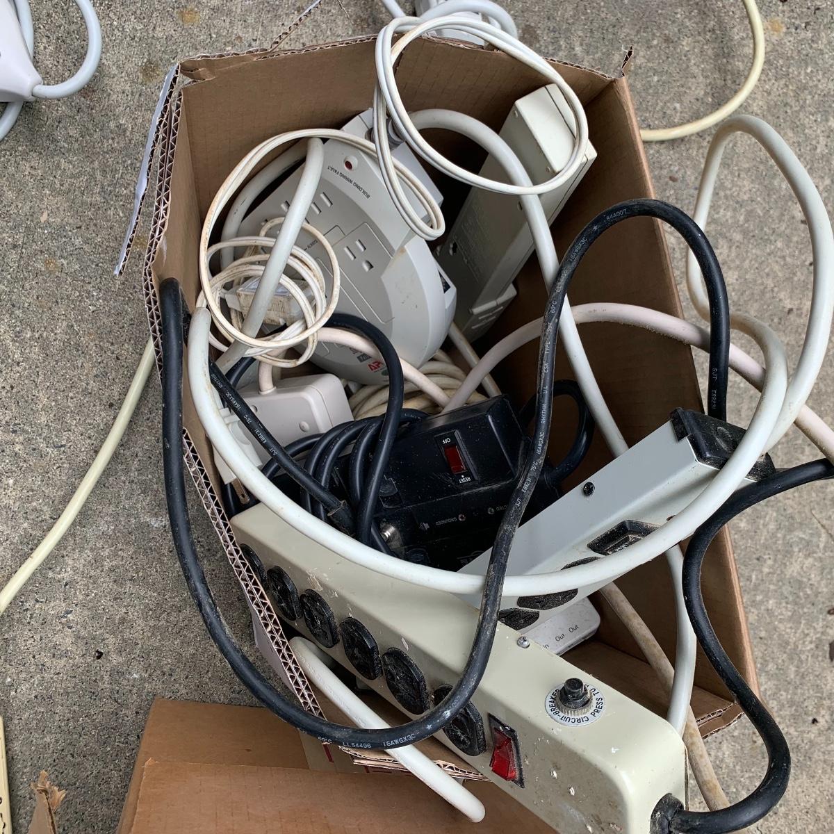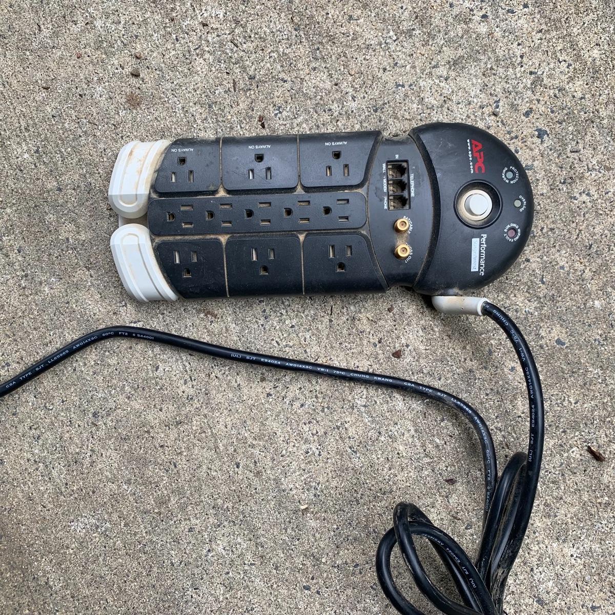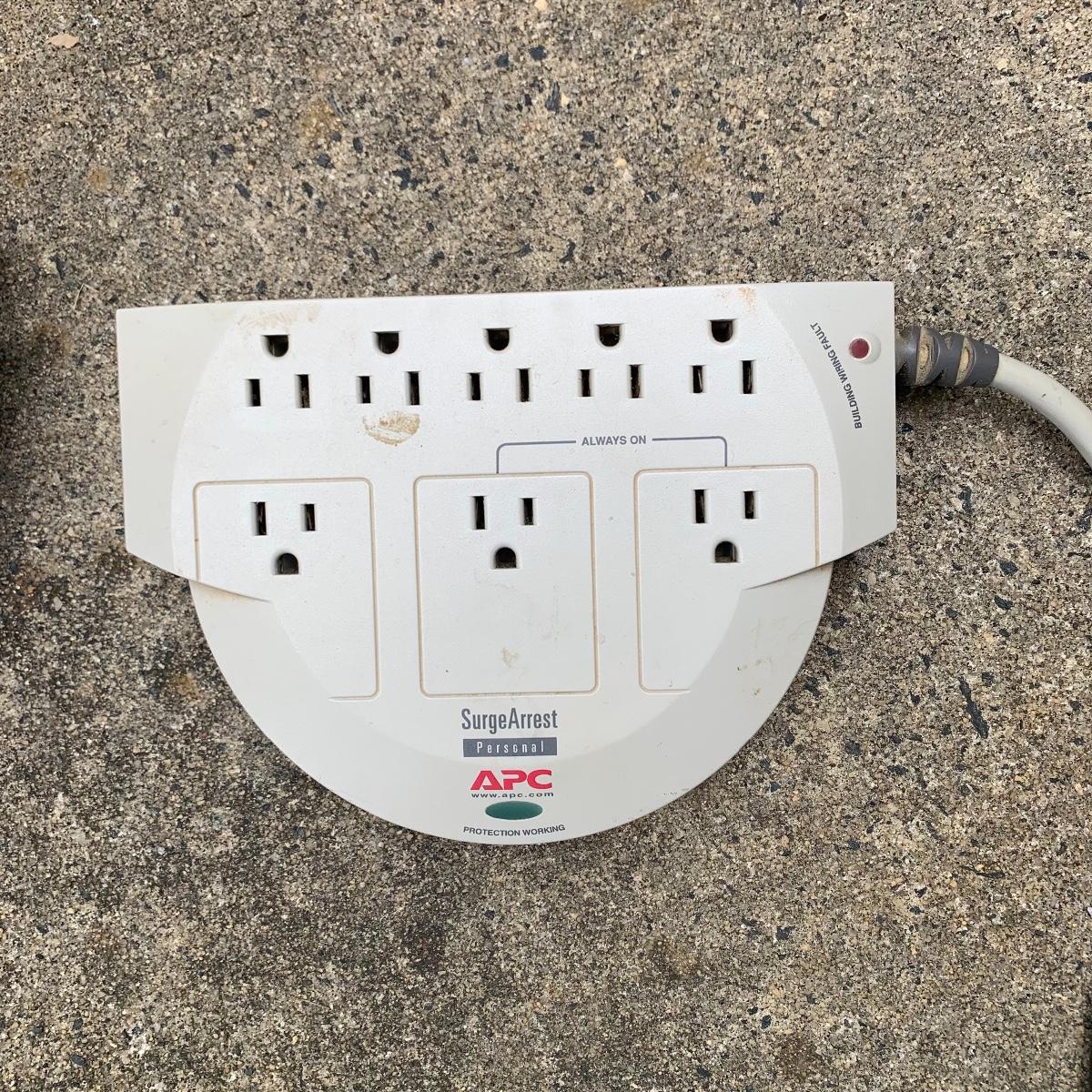 Do you need surge protection for your home, office, or shop? This lot includes twenty power strips, some with surge protection. Brands include Master Power, Belkin, and APC. There is also an Emerson portable am/fm cassette player in working condition. Local pickup only.