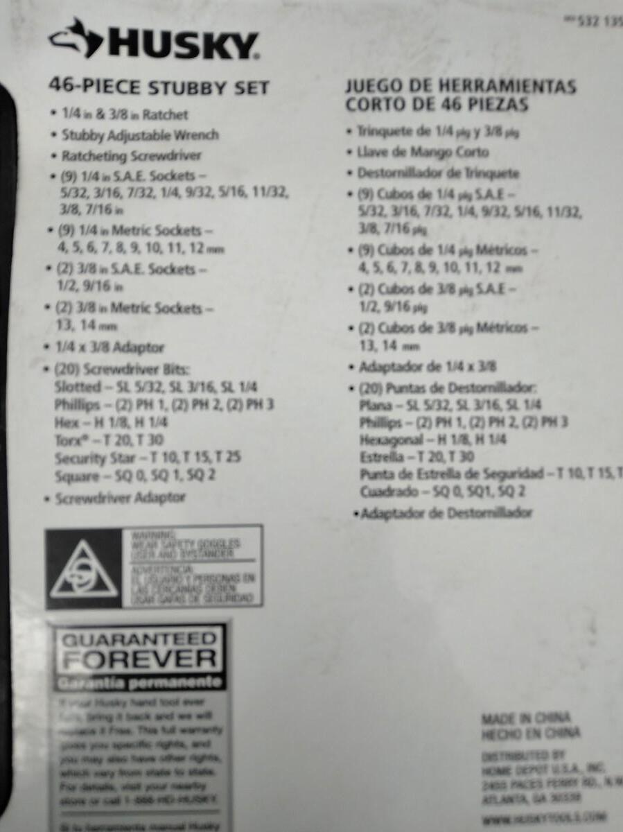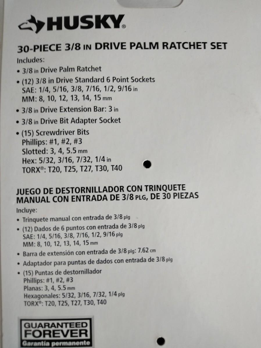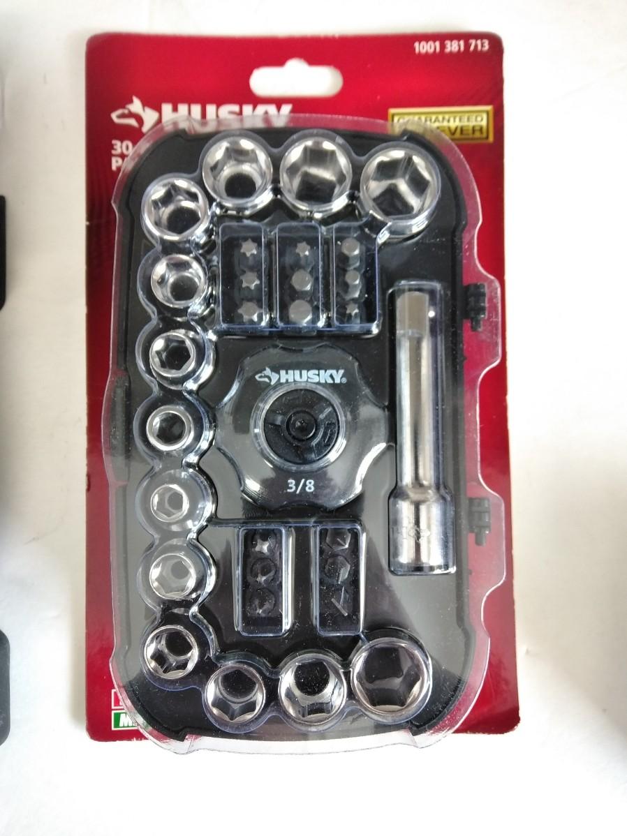HUSKY 30 PIECE 3/8" DRIVE PALM RATCHET SET, AND A 46 PIECE STUBBY SET.