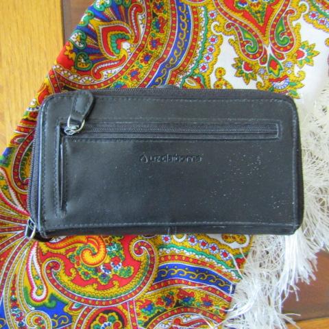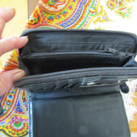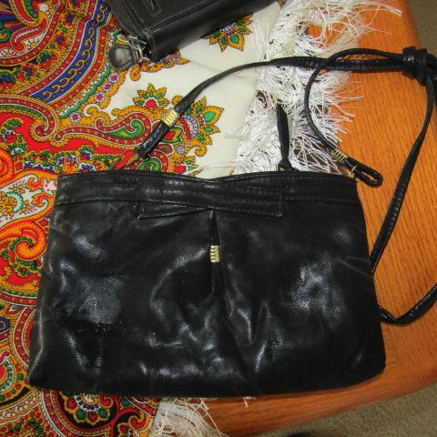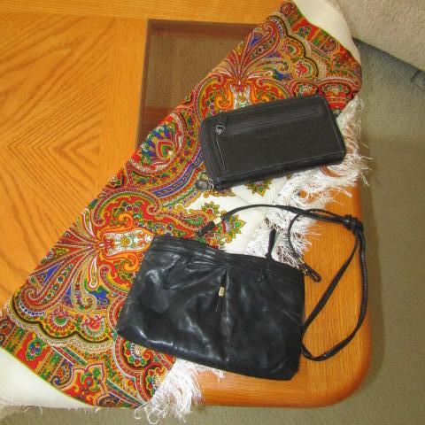 SMALL BLACK PURSE WITH STRAP, LIZ CLAIBORNE WALLET LIKE PURSE AND SCARF
