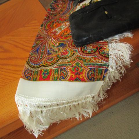 LOT 174 TWO PURSES AND A FRINGED SCARF