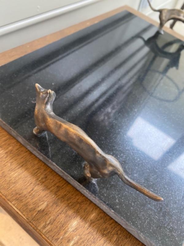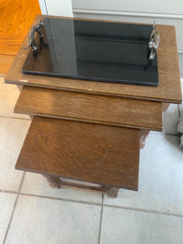 Lot # 174 Vintage ARAM Marble Cat Handle Tray w/ Nesting Tables