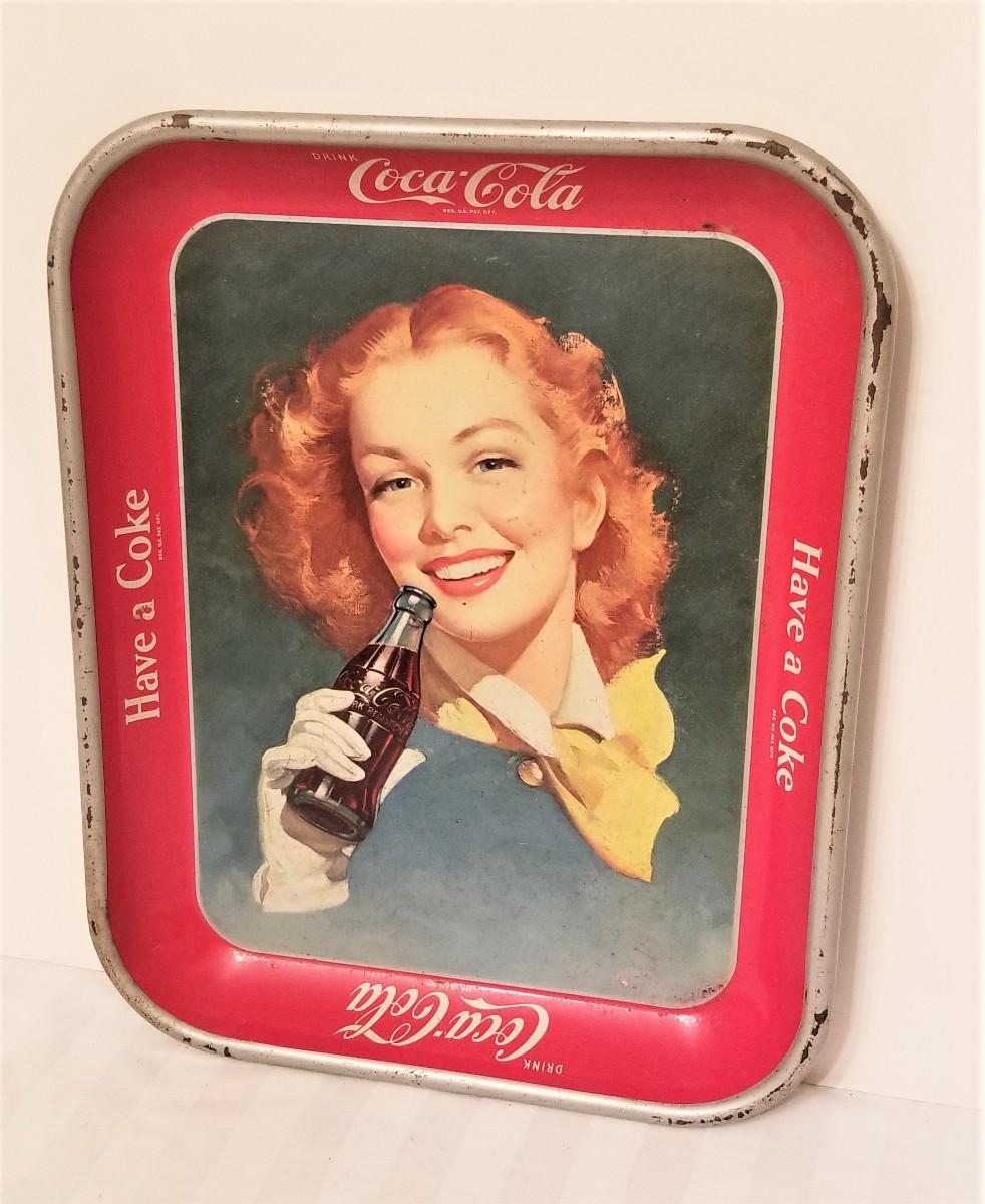 Ca. 1948-52 Coca Cola Tray - Smiling Redhead - not a reproduction. Good vintage condition. 10.5" x 13.25".