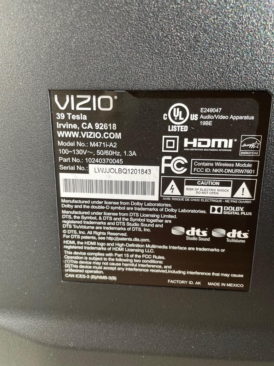 Lot 174 Vizio 48" TV and Sony Blu-ray player