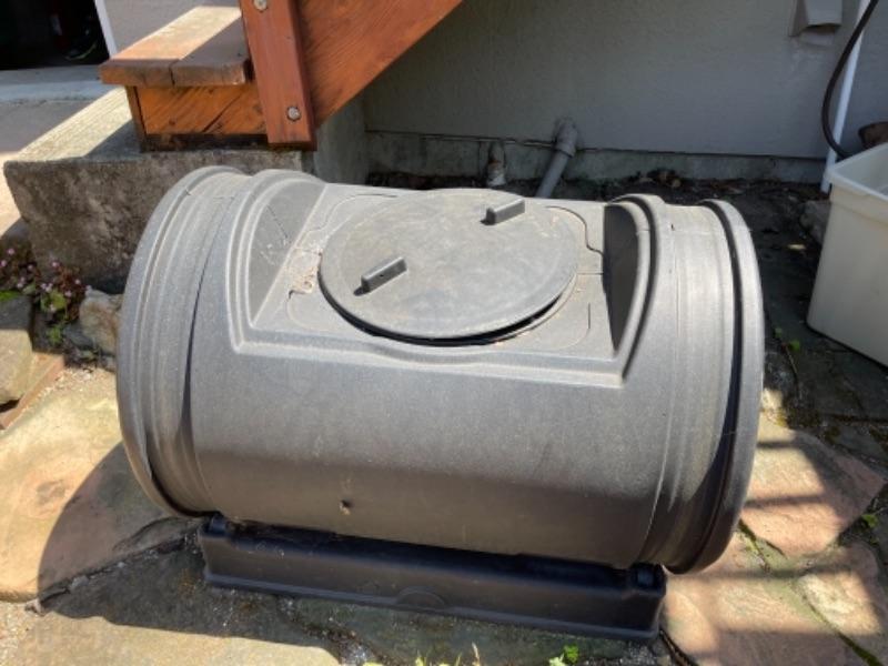 Lot 174G. Barrel Composter and base--$65