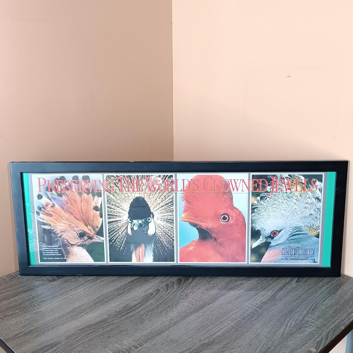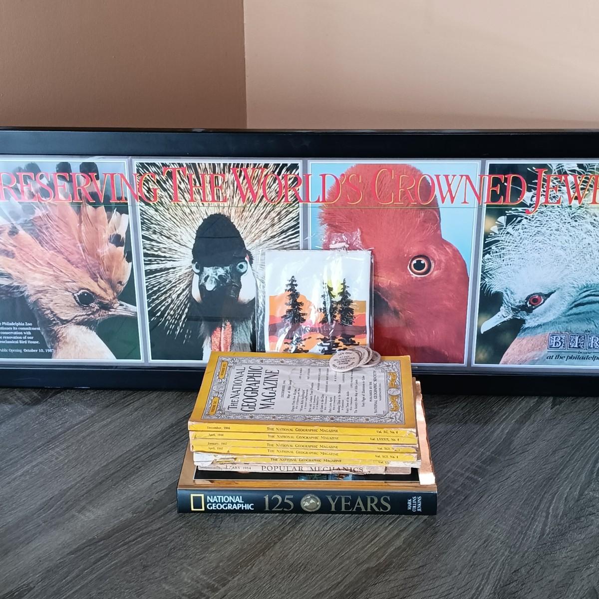 LOT 174L: Framed Art Celebrating Philadelphia Zoo's Bird House Opening 1987 w/ National Geographic 125 Years Coffee Table Book & More