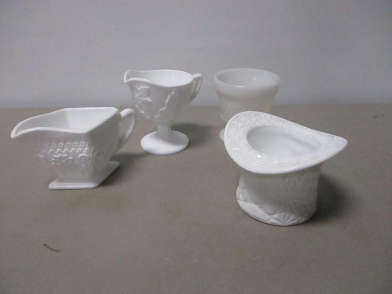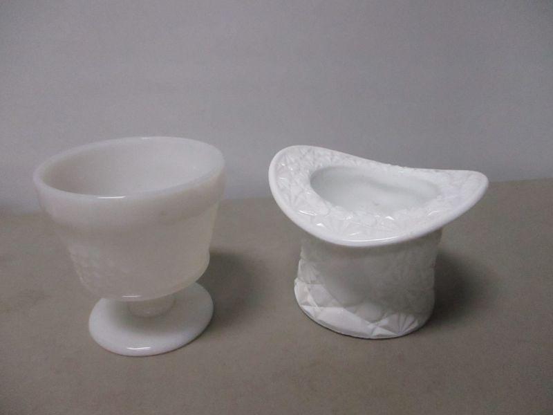 Lot 175 - White Milk Glass - Gravy Boat & Top Hat