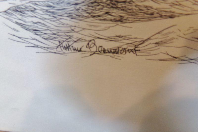 SKETCHING BY ARTHUR BEAUMONT IN BEAUTIFUL GOLD TONE FRAME 21" X 16.5"