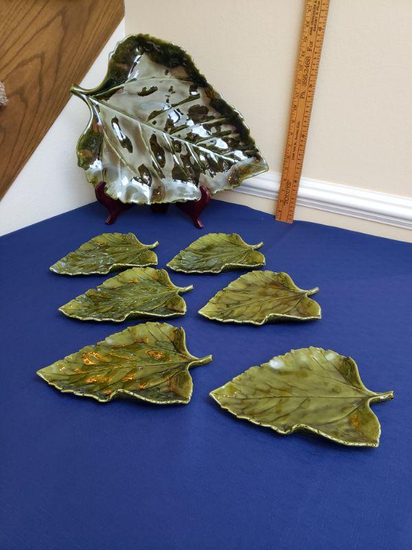Crate & Barrel Green Leaf (6) Plate & Platter