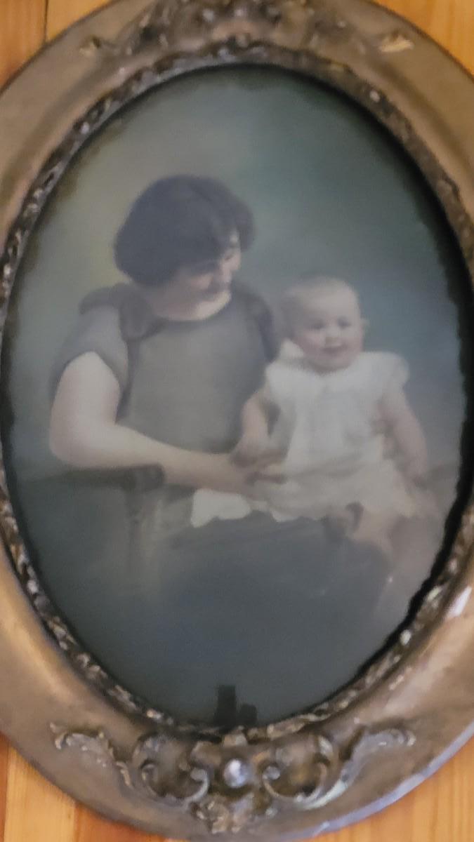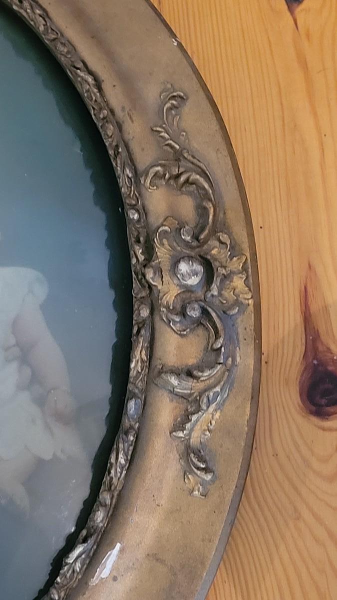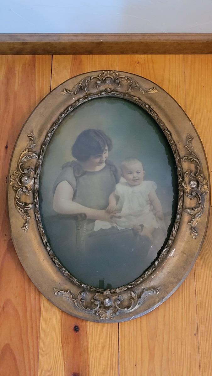 Lot 175: Antique Gold Gilt Wood Bubble Frame with Mother and Child Portrait