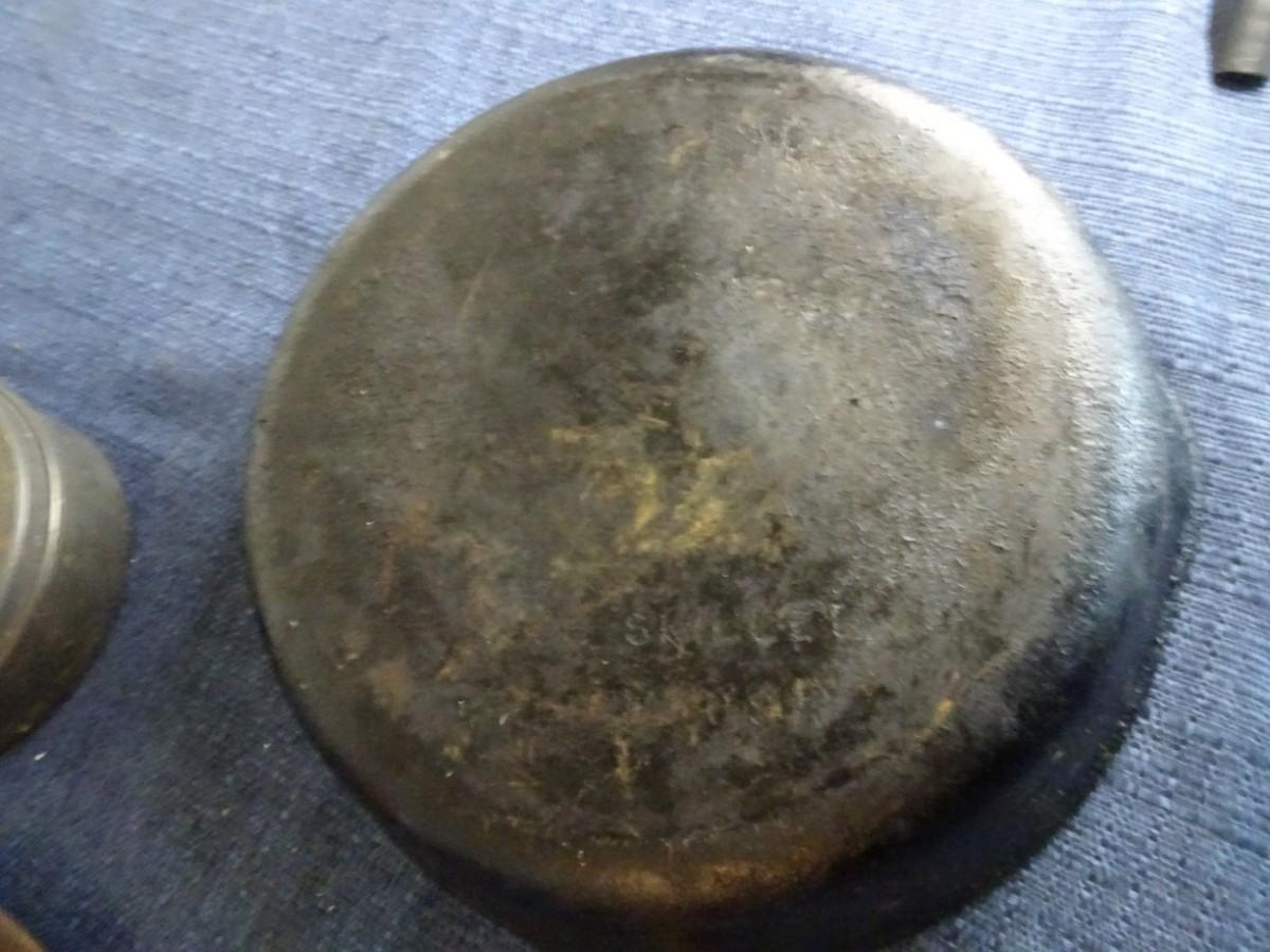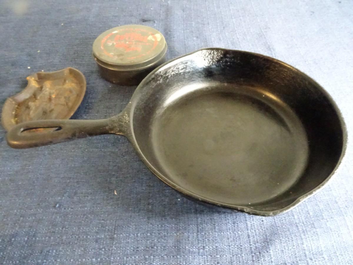 LOT 175. VINTAGE BRASS ASHTRAY AND CAST IRON PAN