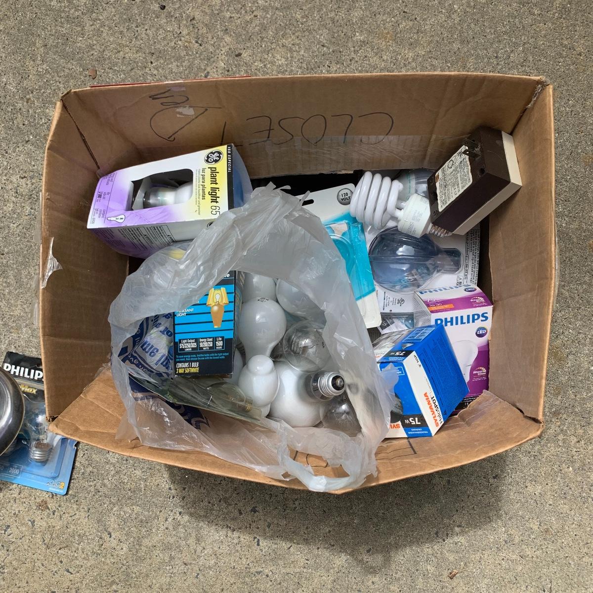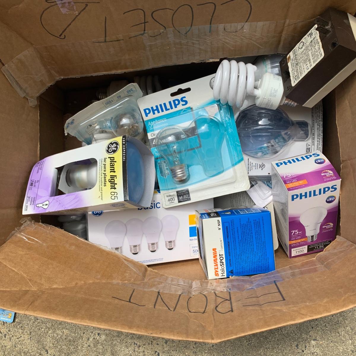 Are you tried of never having the right replacement bulb? This lot includes numerous types and size bulbs as well as four 48” floresent replacement bulbs. Some are new in their original boxes. Local pickup only.