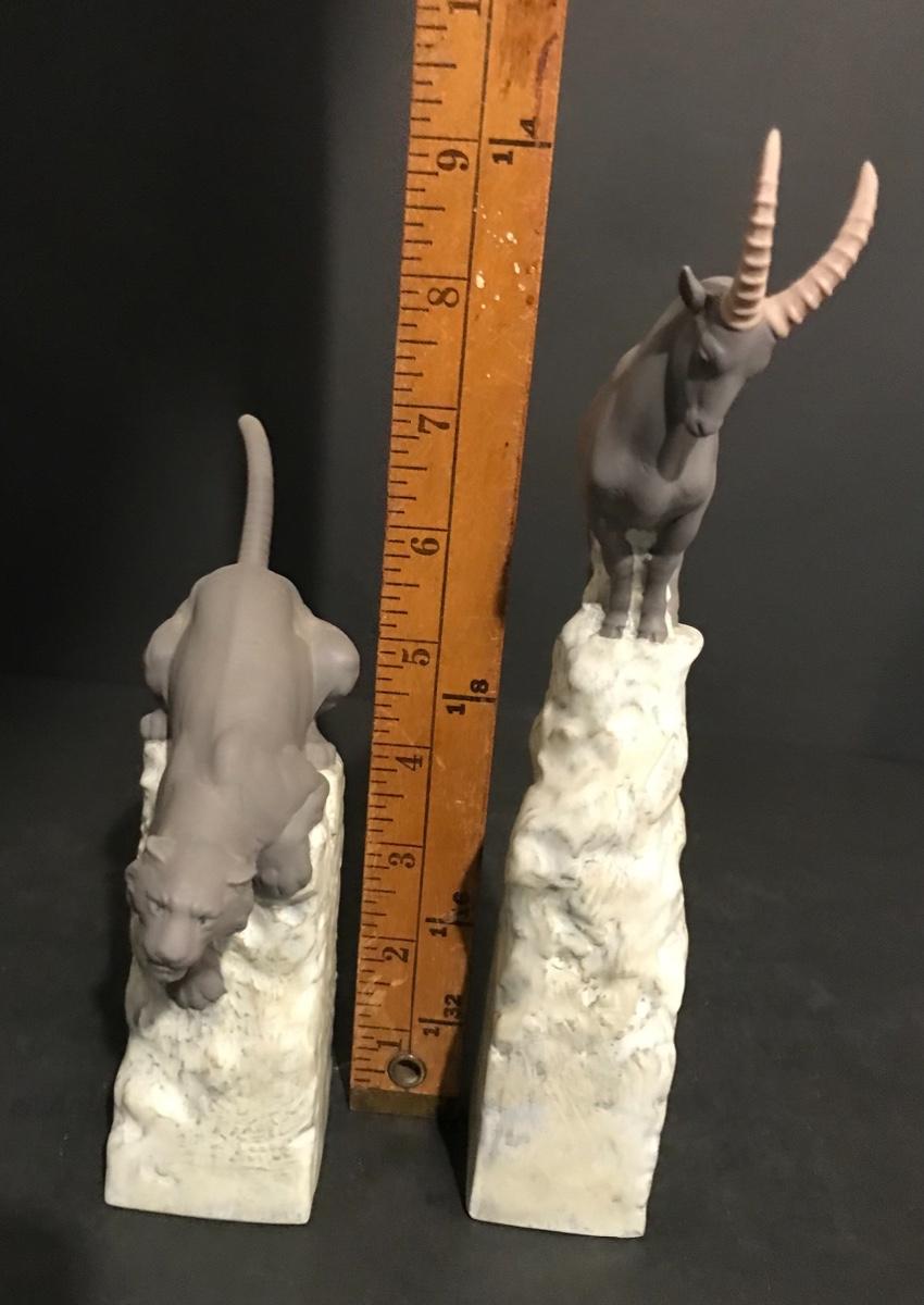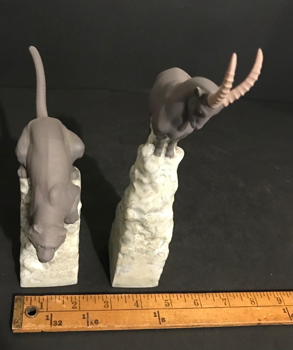 Balance Tiger #8197 Balance Goat #8198. All Lladros are in excellent vintage condition without original boxes, except where noted. All items have been inspected and any damages or imperfections have been photographed and noted to the best of our knowledge and ability. It is the responsibility of the buyer to inspect all pictures, as they are the best representation of the items. The pictures show condition, measurements if taken, and what is included in the lot. Upon pickup, it is the responsibility of the buyer to inspect their items prior to leaving the premises. Once the items leave the premises, there will be no refunds or returns. Buyers are also responsible for bringing their own boxes and packing materials for their items. Thank you.