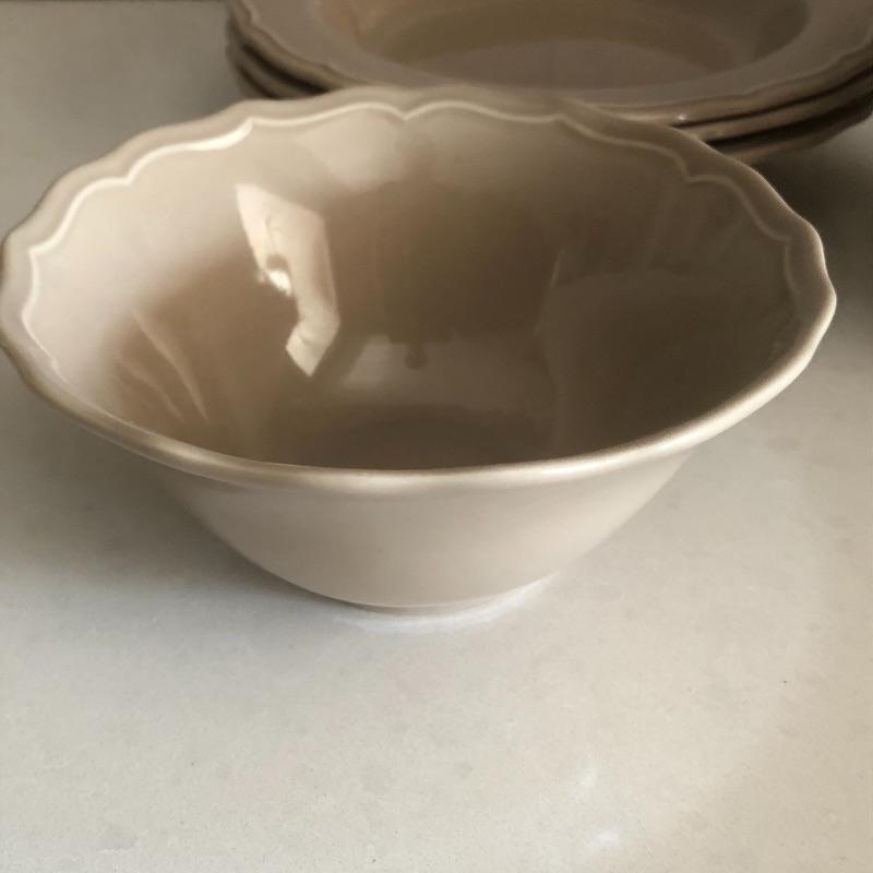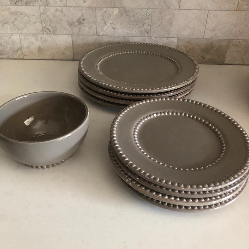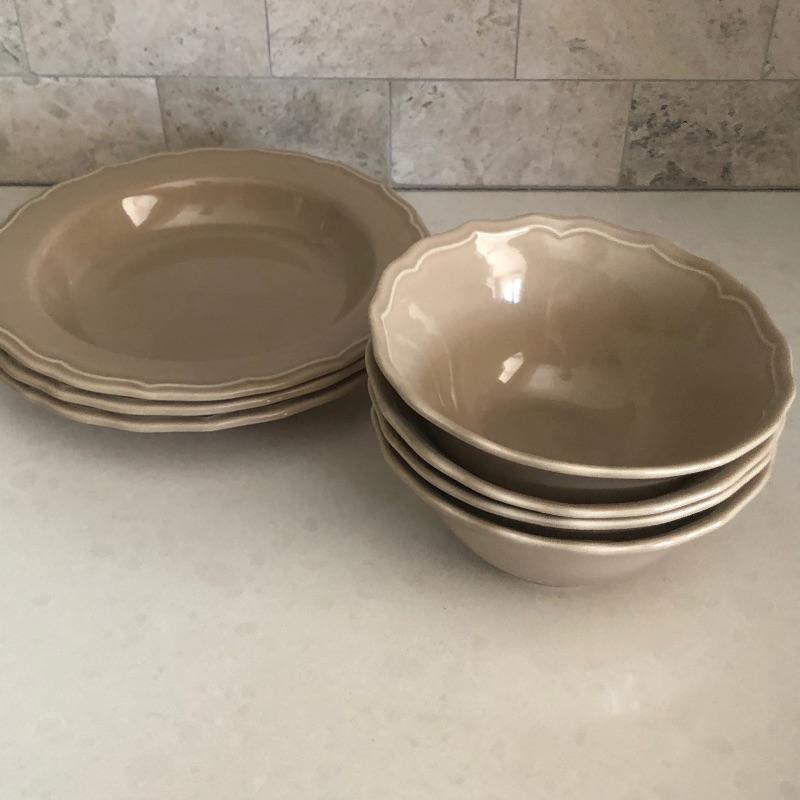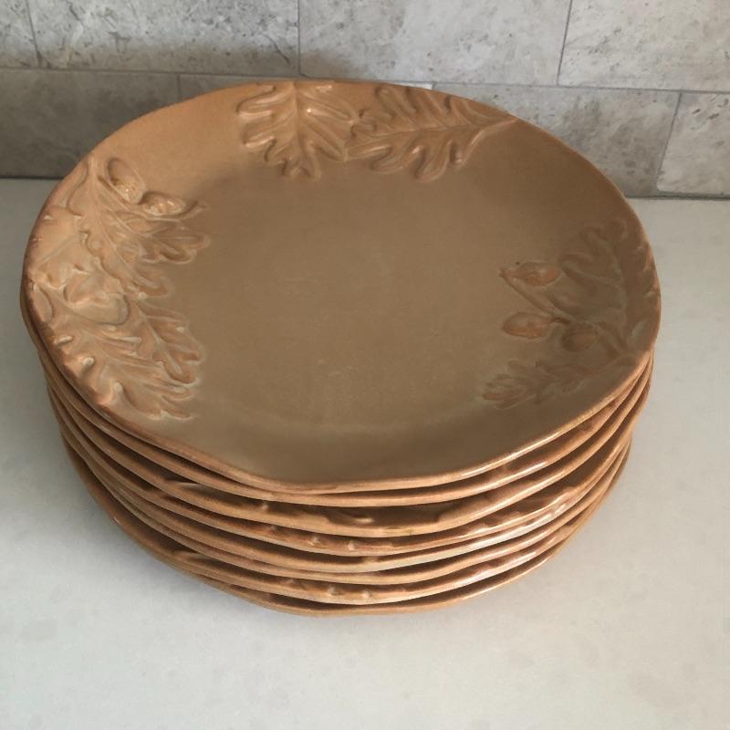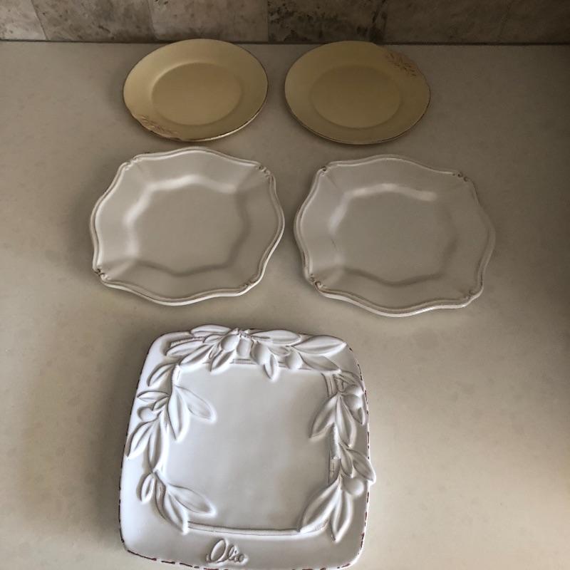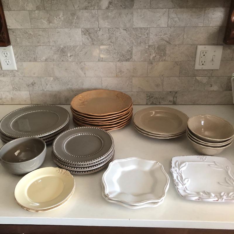 A nice assortment of quality dinner plates, bowls and more. There are 8 dark peach Biltmore Inspirations dinner plates. The Williams-Sonoma set includes 4 desert bowls and 3 salad bowls. The brown set is GG collection and includes 4 dinner plates, 4 side plates and 1 bowl (some pieces have blemishes shown in images). Lastly there is an assortment of side plates.