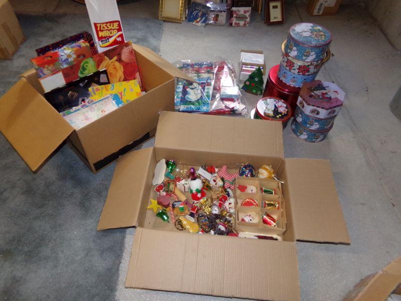 LOT 175  HOLIDAY GIFT WRAP AND ORNAMENTS