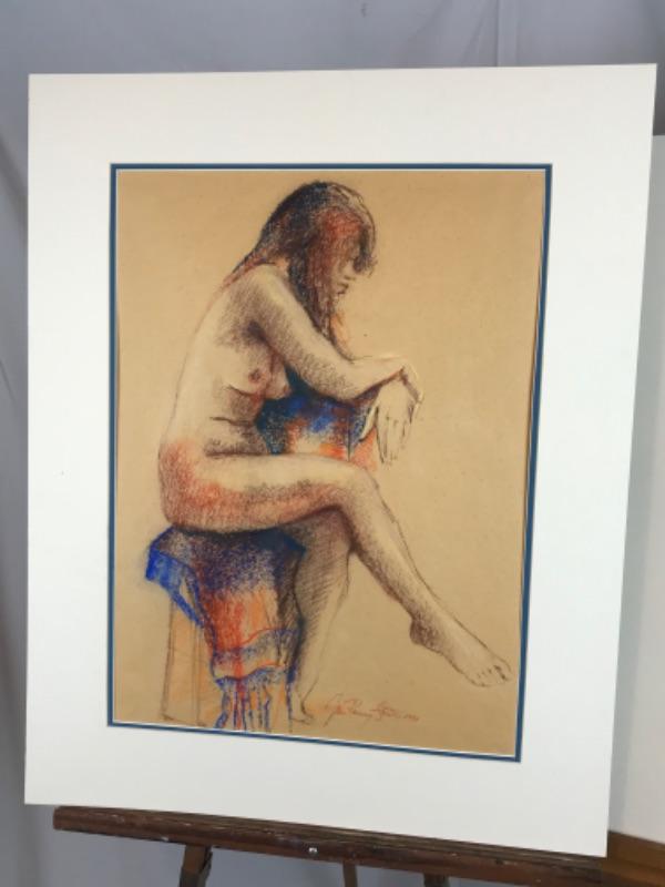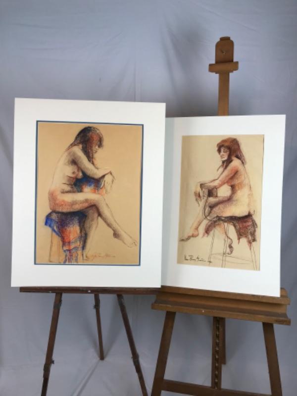 Pair of Jean Ranney Smith signed original nude pastel drawings. “Lady with Blue Blanket” measures 30”x24”. “Lady with Brown Blanket “ measures 30”x20”