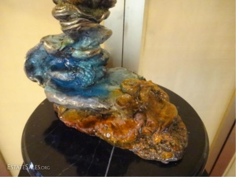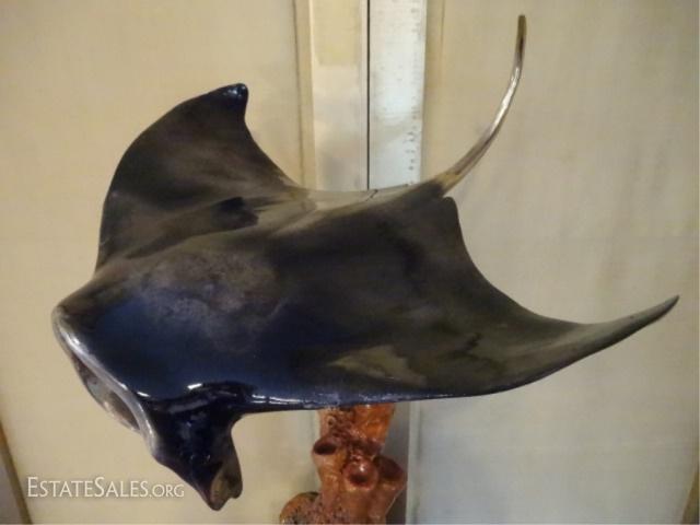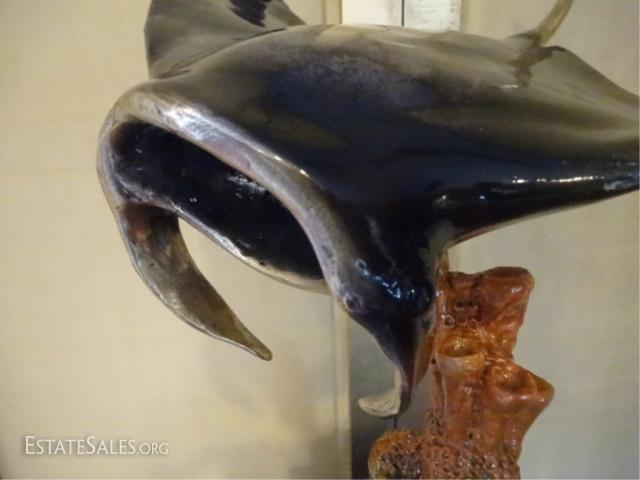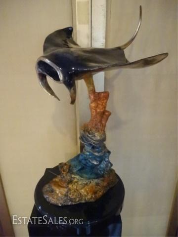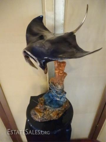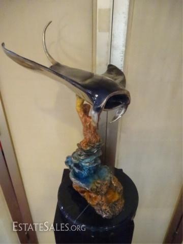 LOT 175: LARGE PATINATED BRONZE RAY SCULPTURE ON MARBLE BASE