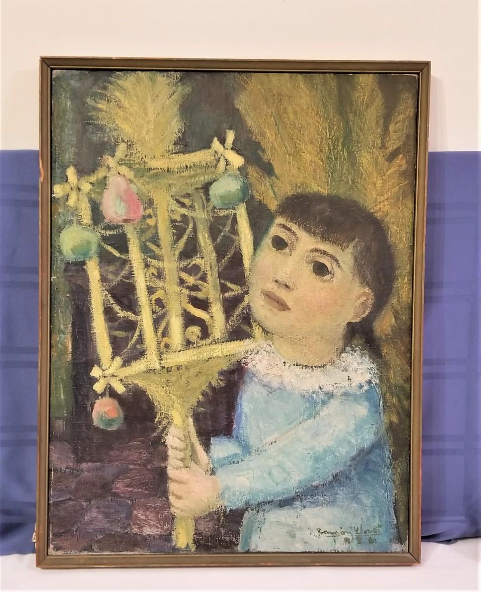 Lot #175 Original Oil on Canvas "La Nina de la Palmas" - 1956 - Listed Artist
