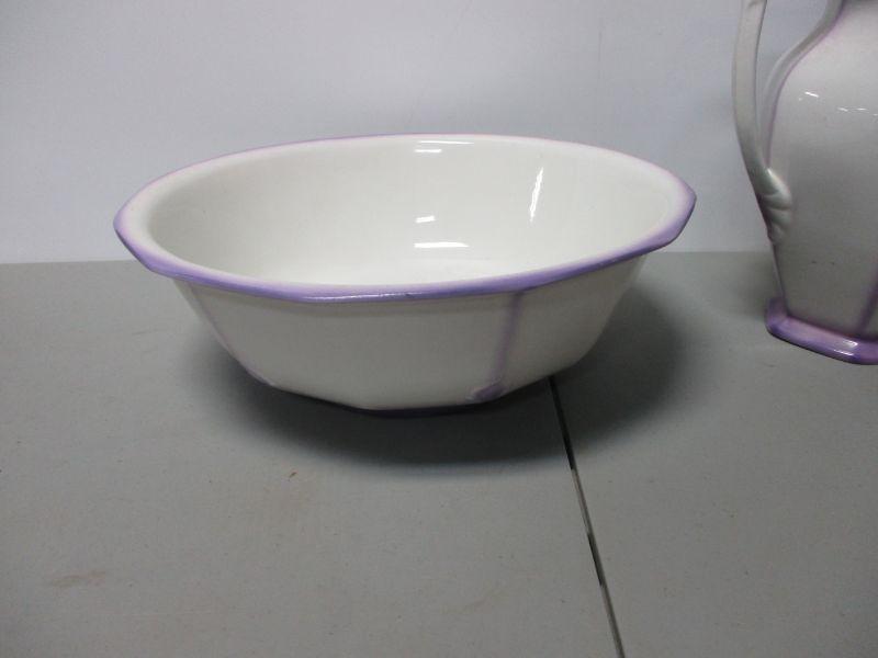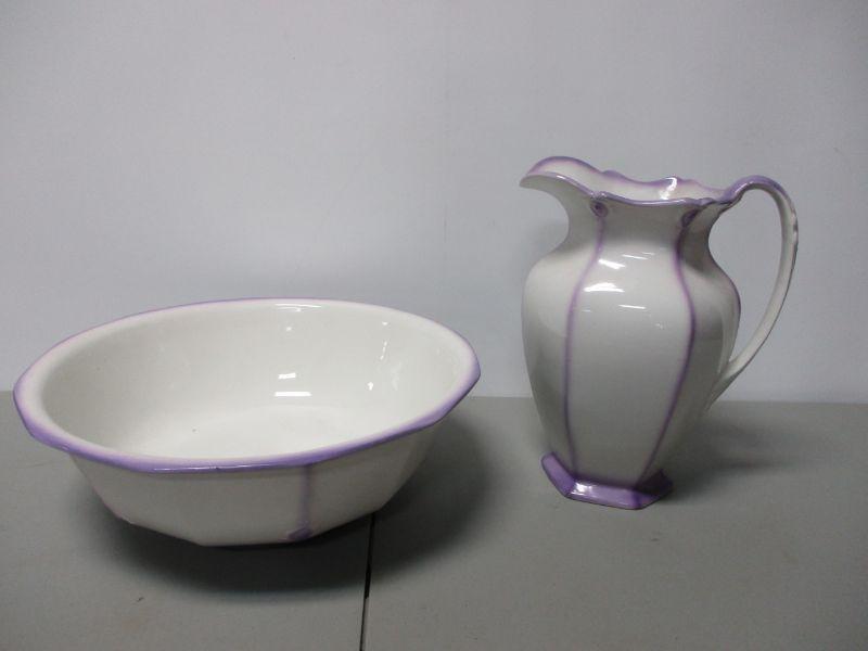Lot 175 - Purple Trimmed Wash Basin & Pitcher
