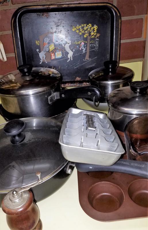 Muffin tin, corelle and more to include a vintage metal ice tray