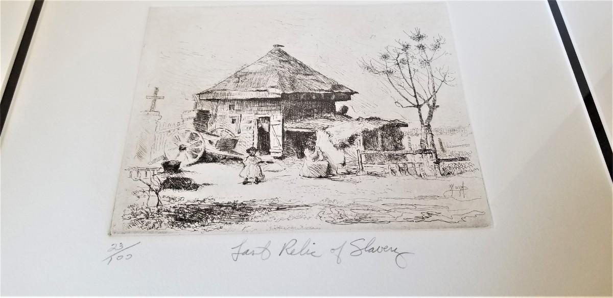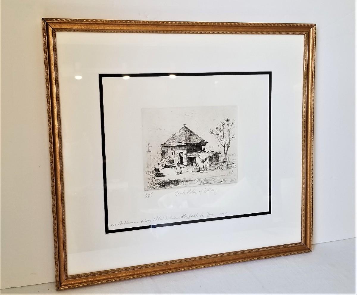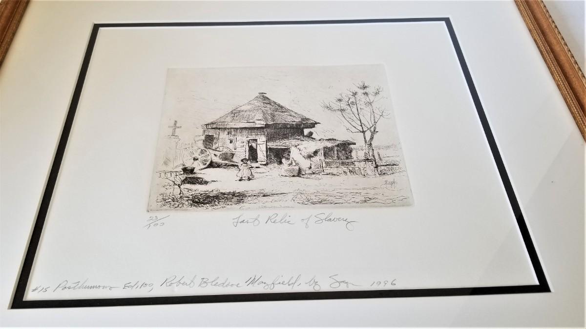 "Last vestige of Slavery", numbered 23/100 - posthumous etching done by the artist's son from the original plates. Robert Bledsoe Mayfield was a New Orleans listed artist who died in the 30's. Many of his works are in the New Orleans Museum of Art and private collections. Nicely framed, 19.75" across, 17.5" tall.
