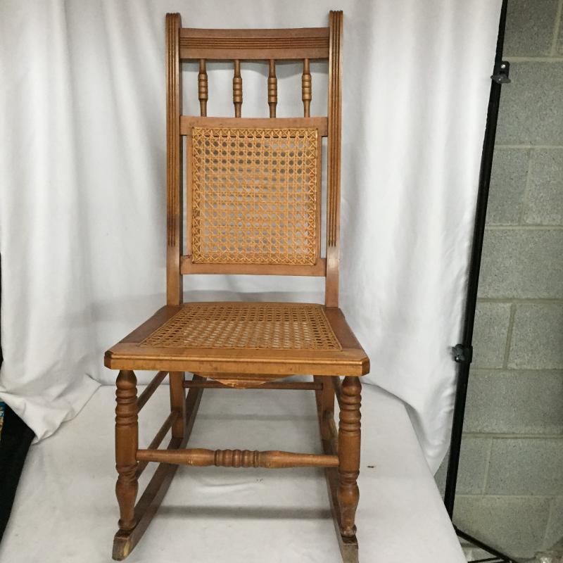 Enchanting Cane Back Rocker and Bench. Rocker has some gouges-See Pictures. Bench Measures 25.5” x 19” x 23”.