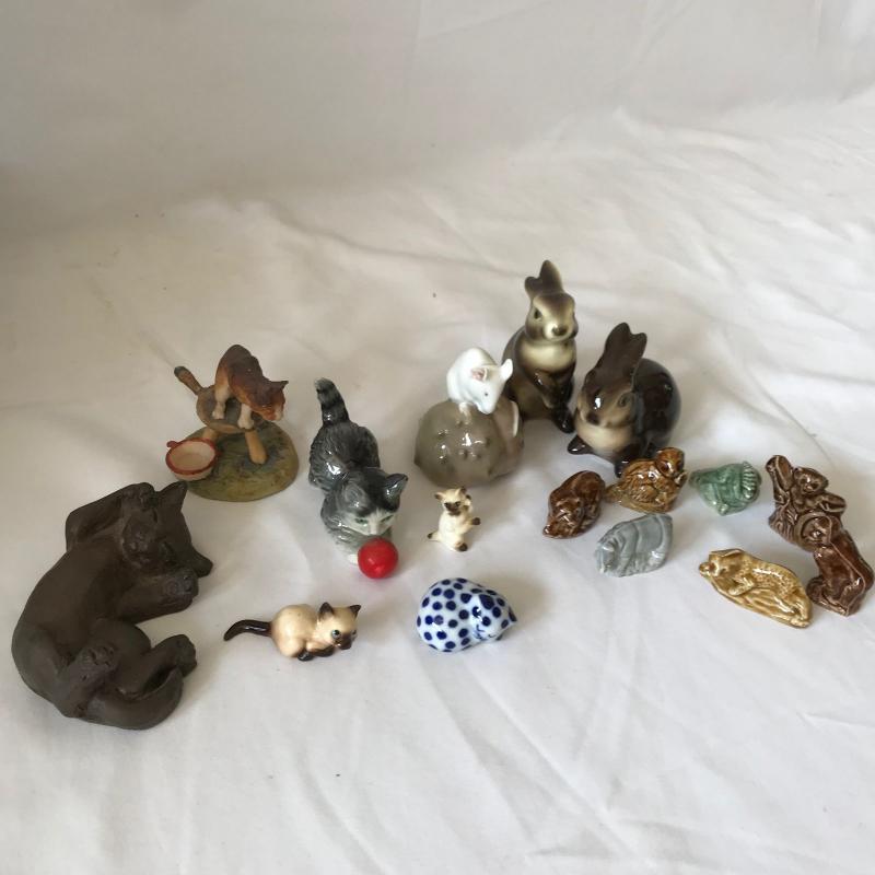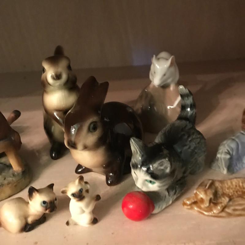Large lot of tiny animal figurines. Some hummel. Some unmarked. See photos. Rabbit is 3” tall. Shipping or local pick up.