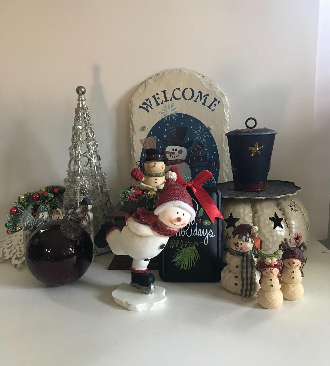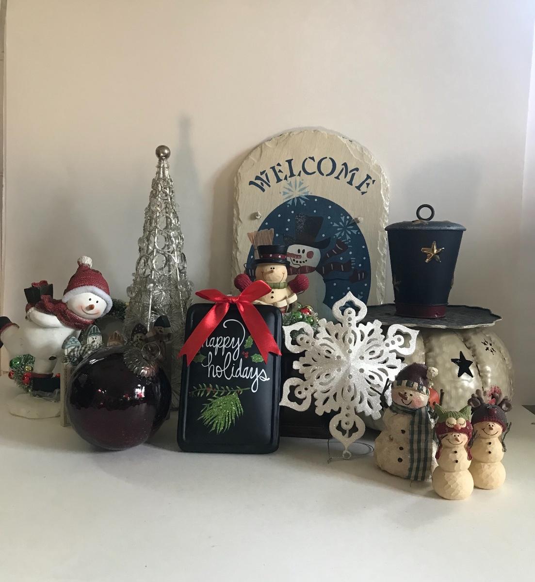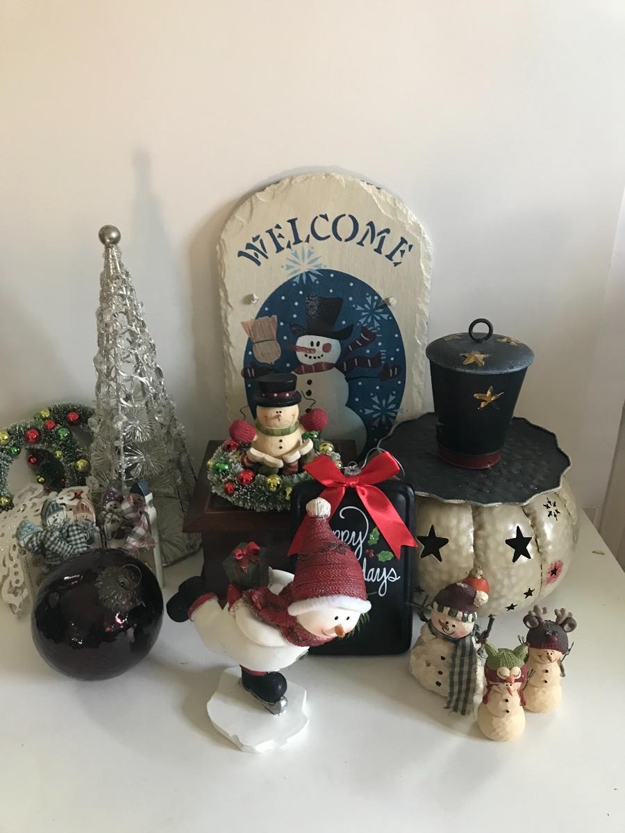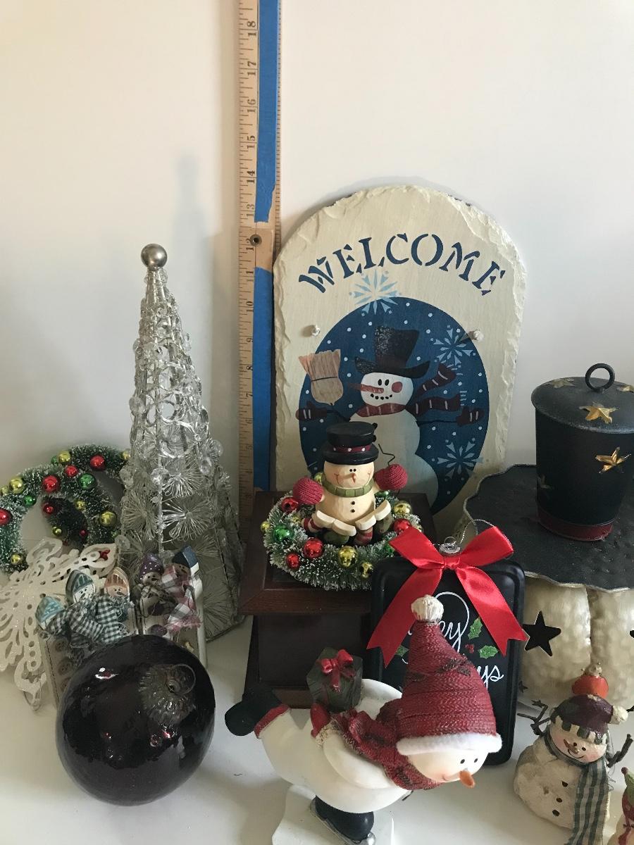 Slate welcome sign, metal snowman head candle holder, ceramic, skating snowman, a red, glass Christmas ball, sparkly snowflake, silver tree, and more. Please see all pictures as they are the best representation of the items. The pictures show condition, measurements if taken, and what is included in the lot. Due to the large amount that we photograph and the time frame, we are not always able to take measurements. All items unless noted, are pre-owned and have been used. If you purchased furniture, you must bring help. We do not allow one person to carry large furniture out on their own. Bring help, tools and a truck for the safety of our client’s homes, and your personal safety. Company policy. Thank you.