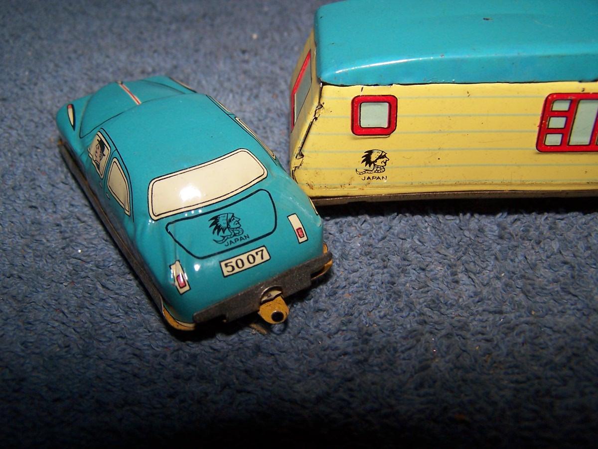 THESE ARE GREAT VINTAGE TIN LITHO VECHILES! FRICTION WORKS.. 7 3/4'' TOTAL LONG.. ALL TOYS HAVE BEEN PLAYED WITH..