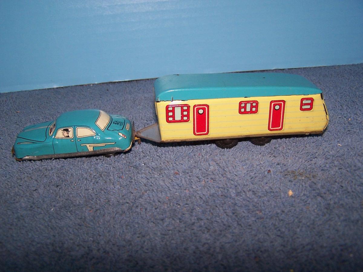 LOT 174 THESE ARE GREAT VINTAGE TIN LITHO CAR AND TRAILER! FRICTION..