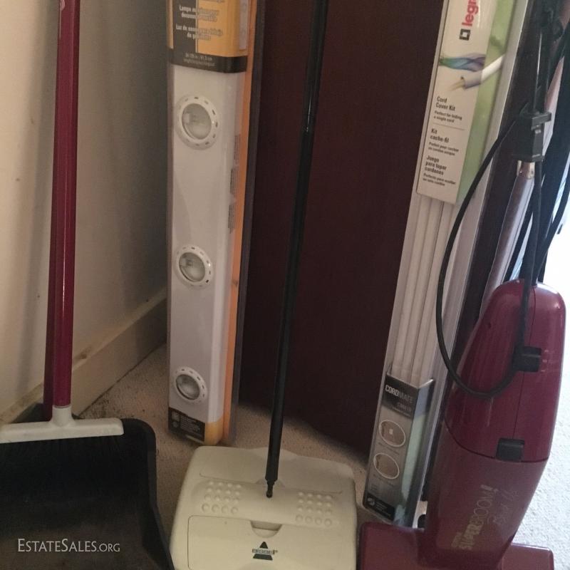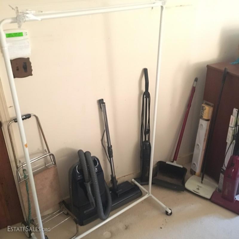 Several vacuums. Include Kenmore Whispertone, Bissell, and two Eureka Superbrooms. Also clothing rack and Luggage rack.