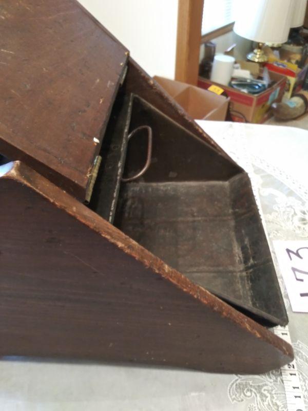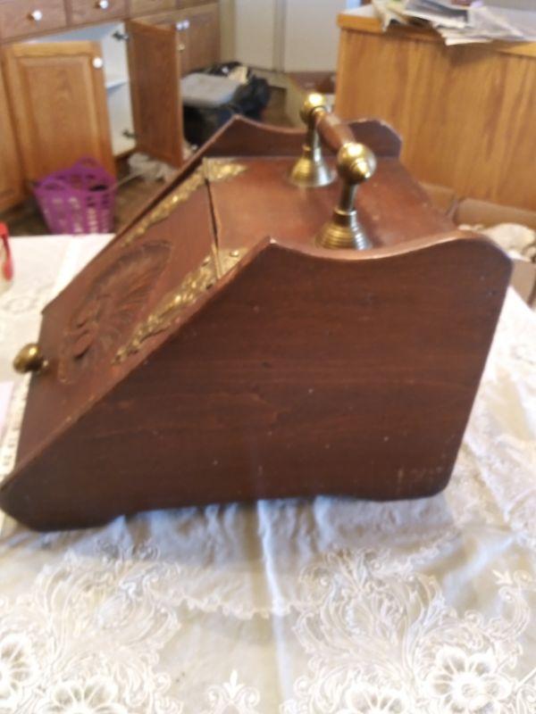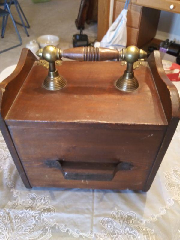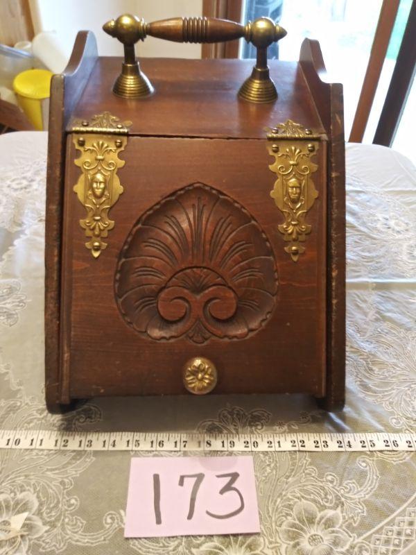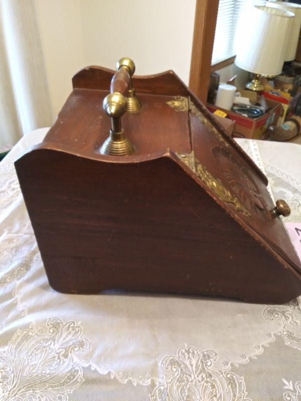 ORNATE WOODEN BOX WITH METAL INSERT FOR FIREPLACE ASHES