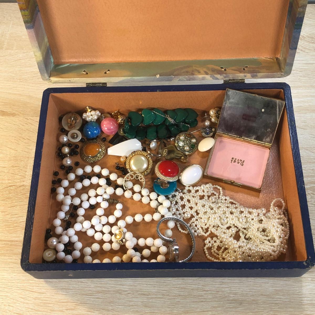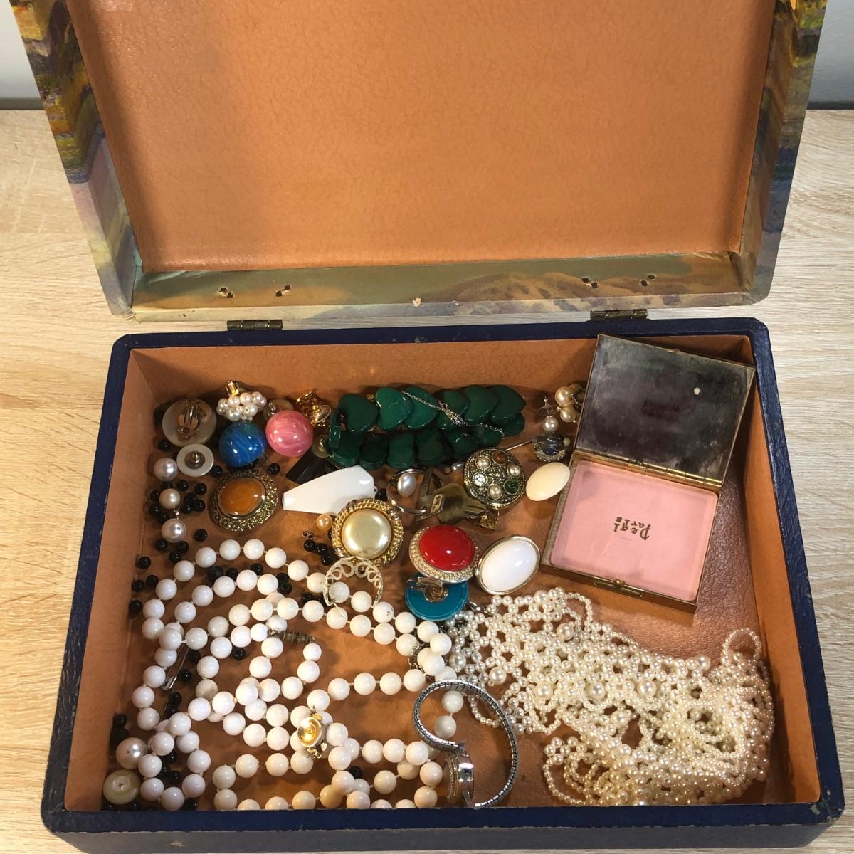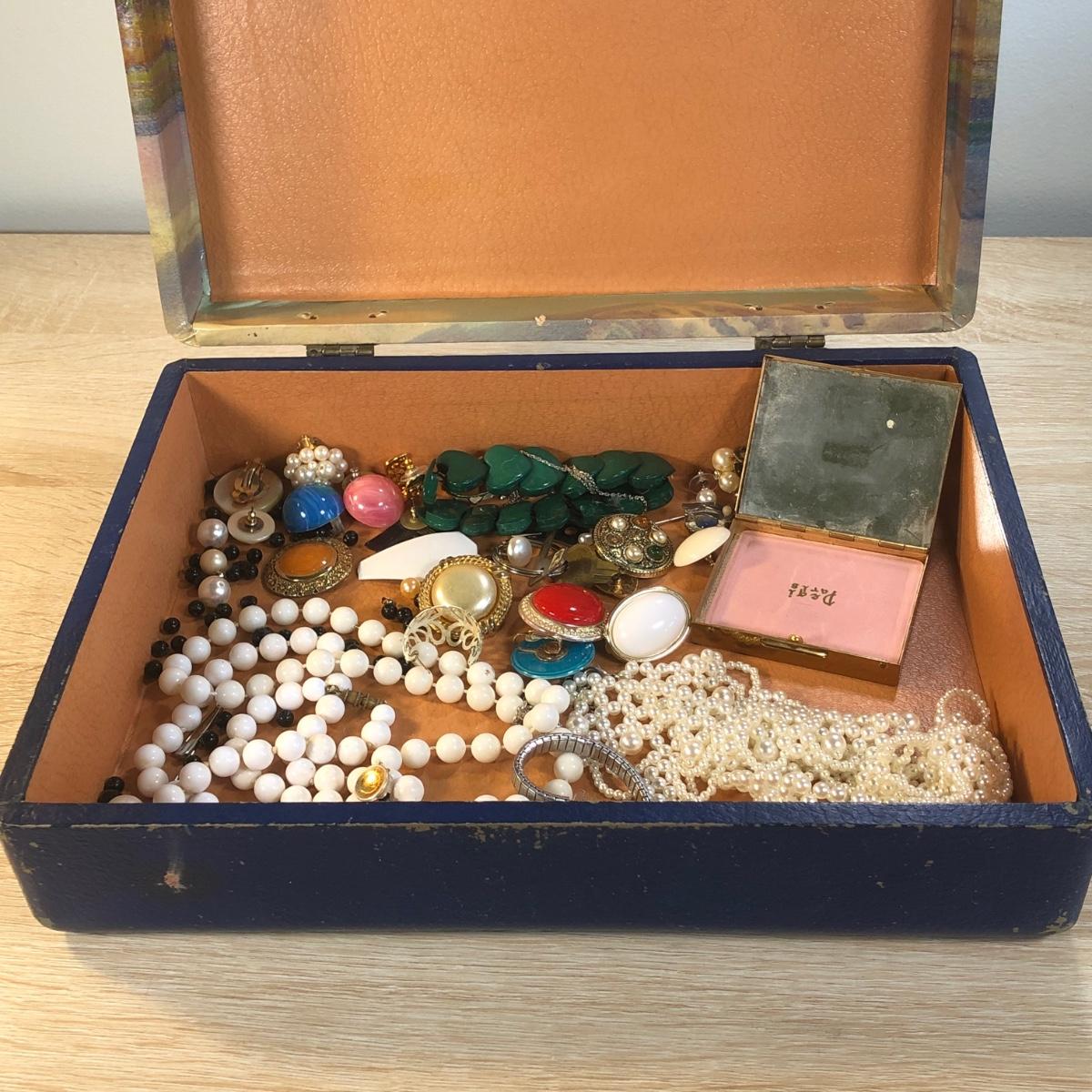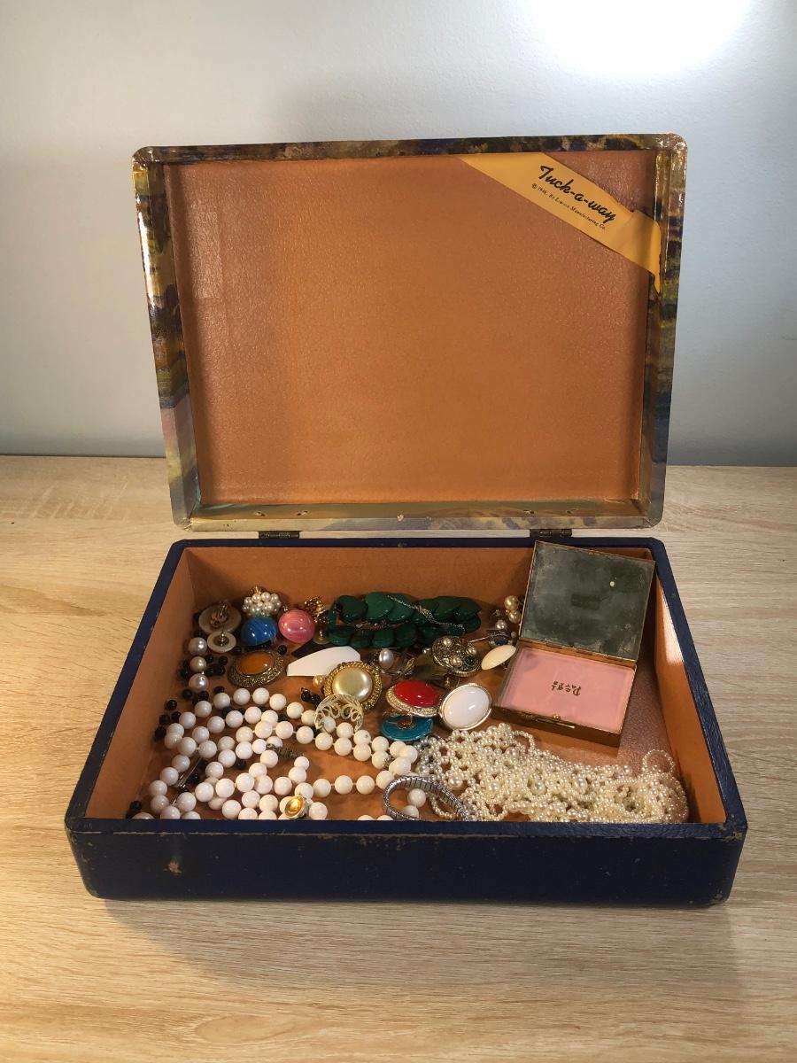 LOT 175J : Misc. Craft/repair lot in Vintage box including a Vintage Compact
