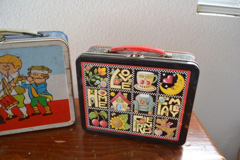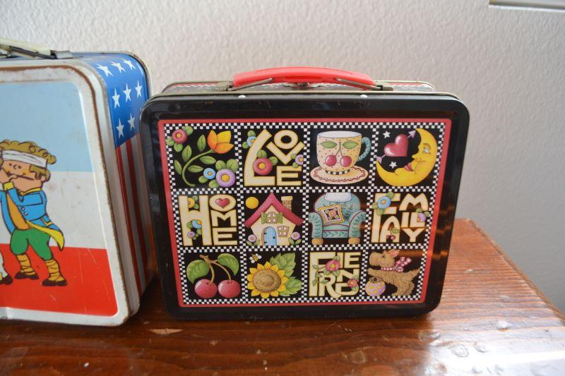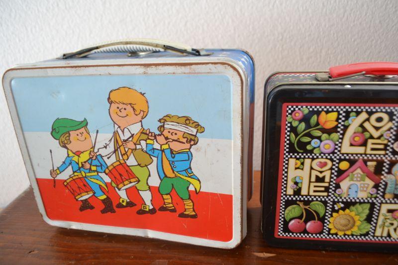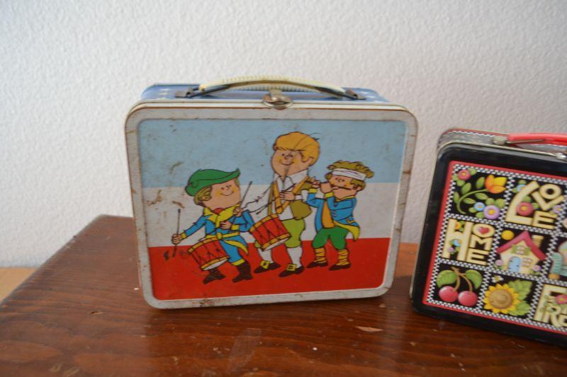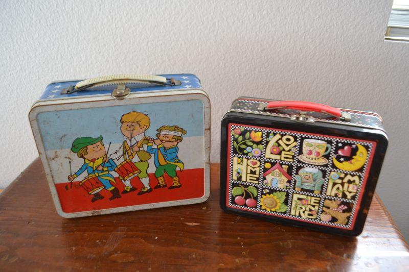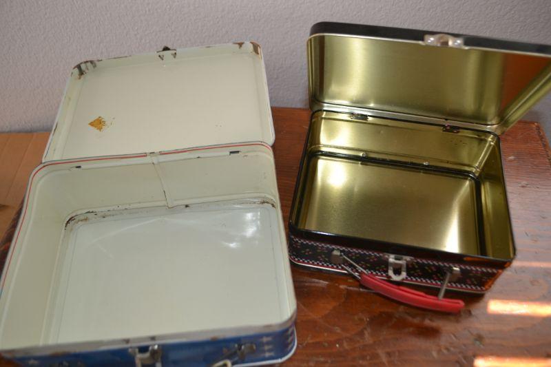 TWO LUNCH BOXES. LARGER ONE HAS DAMAGE