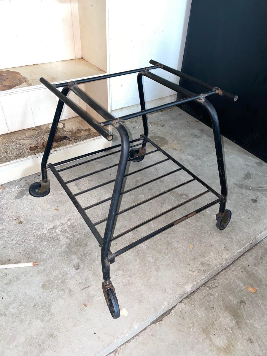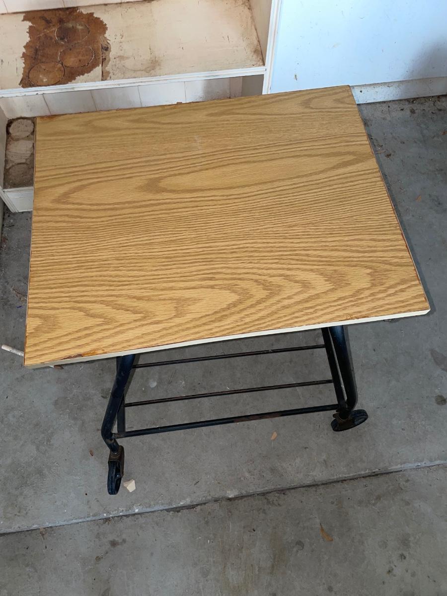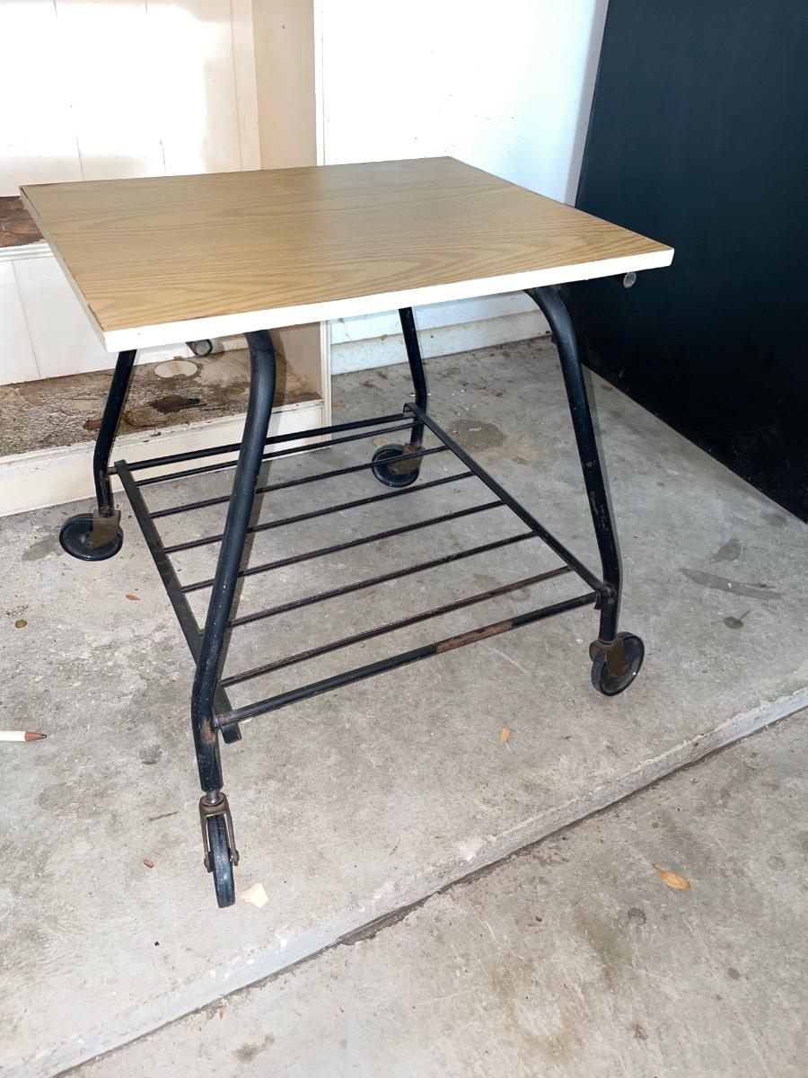 Laminate top (not attached) metal frame measures 19" X 19" x 18" hi