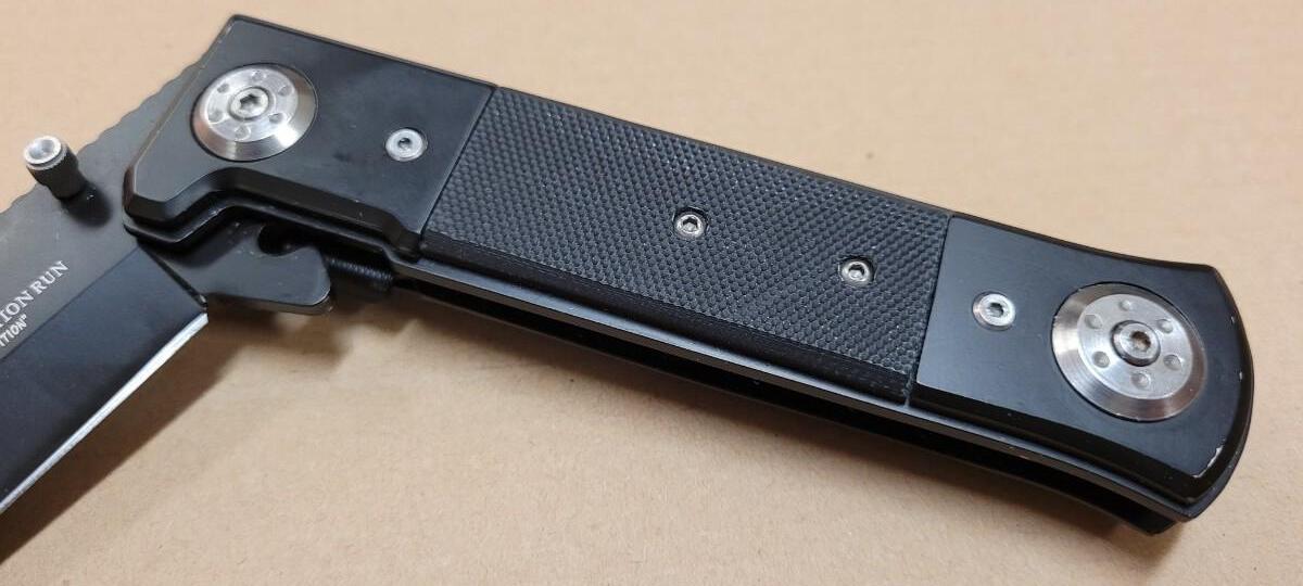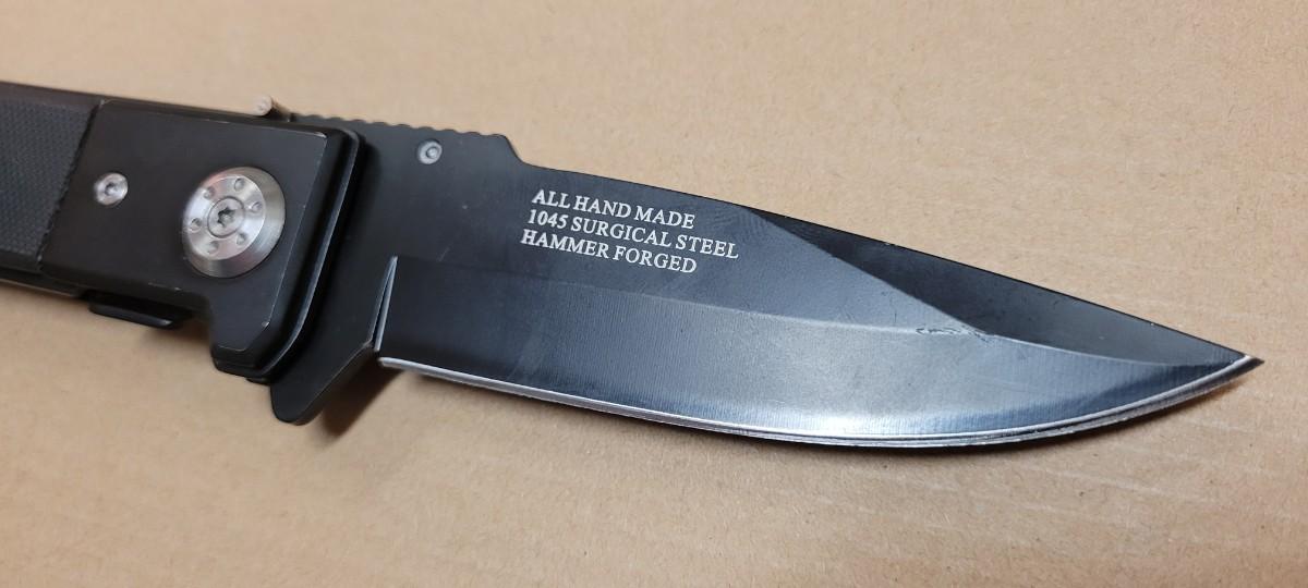 Made from 1045 Surgical Steel, this pocketknife has a strong and fast action when engaged to open so may not be suitable for first time knife owners or children under 18.