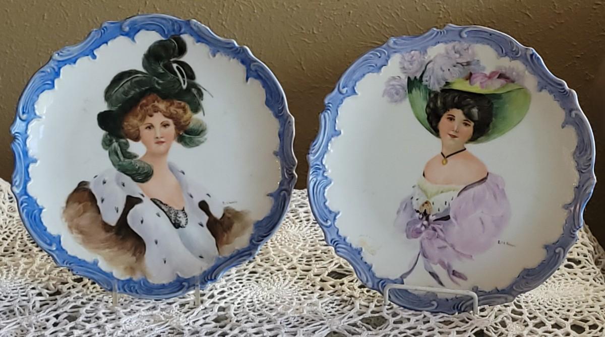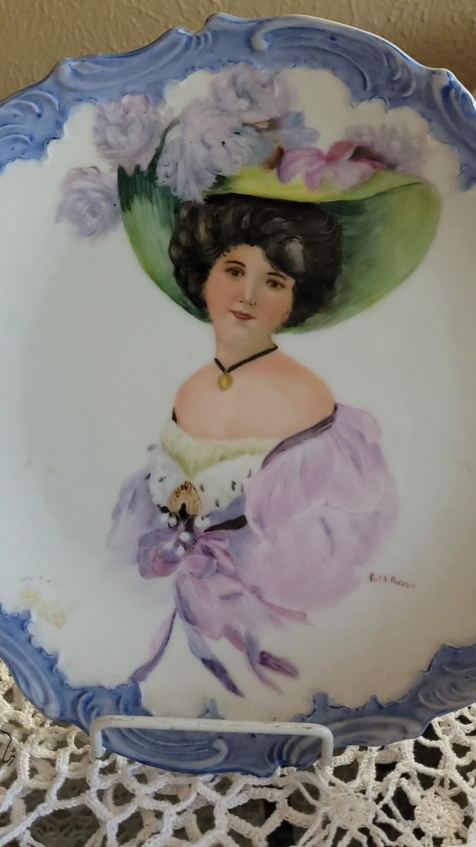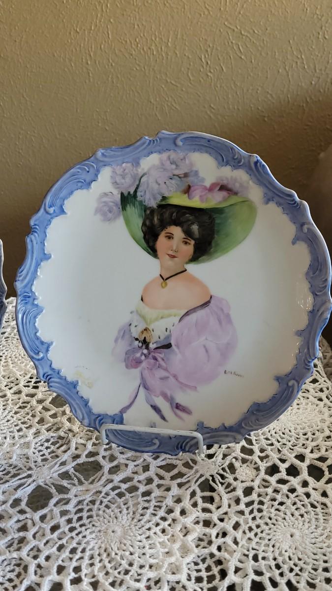 Lot 176: (2) Antique/Vintage Handpainted Ladies Plates
