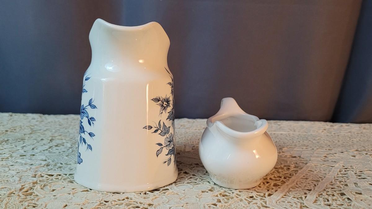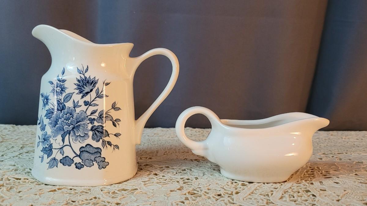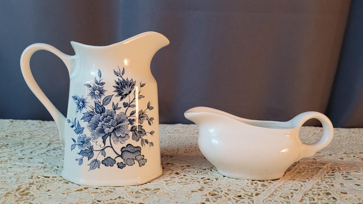 Lot 176: Ironstone with Blue Flowers Creamer and Small White Creamer