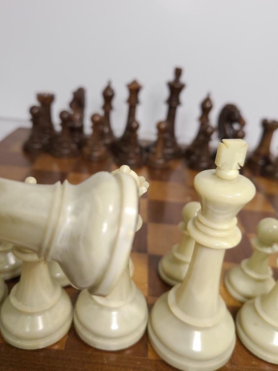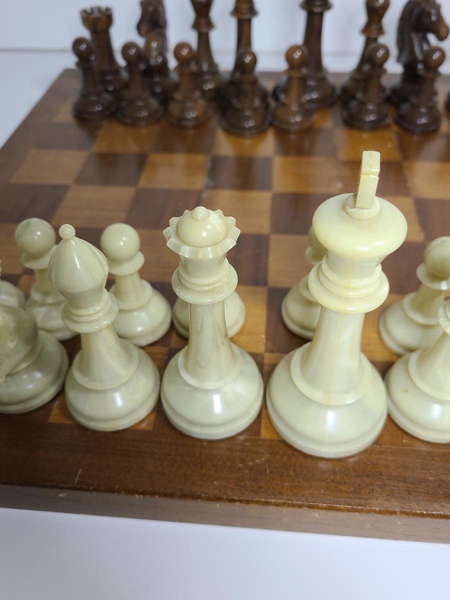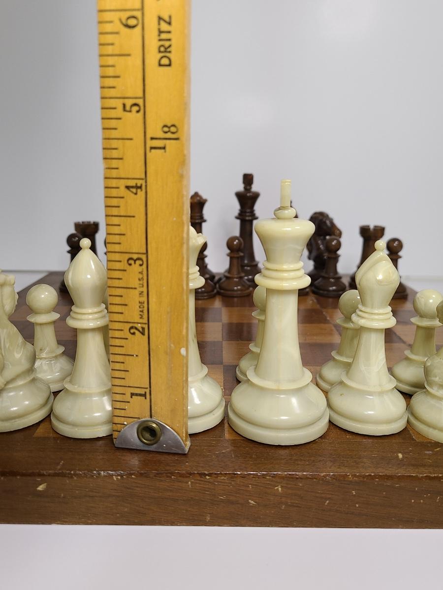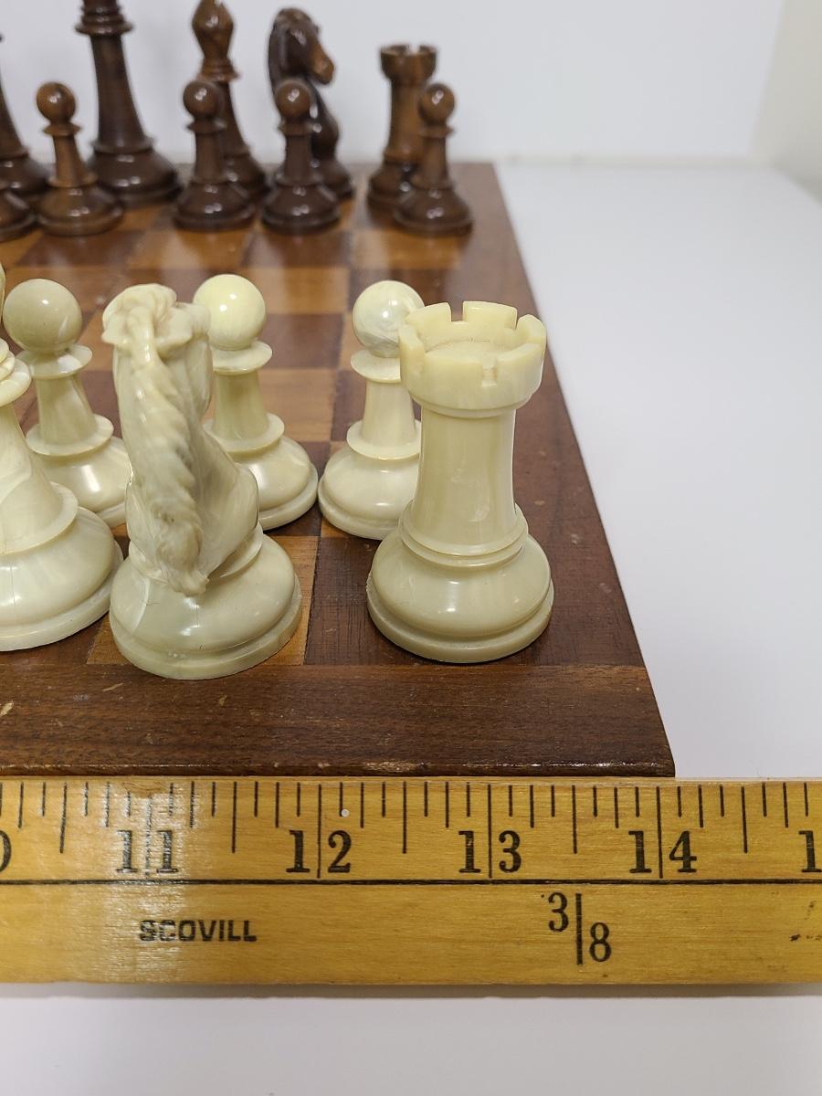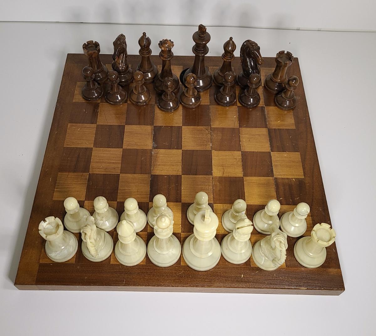 This set is great for a novice player to start with. The wood board is actually overplayed particle board, but solid in design, with minor wear, and the pieces are resin with felt bottoms. @ 4 inch king. Please see all pictures as they are the best representation of the items. The pictures show condition, measurements if taken, and what is included in the lot. Due to the large amount that we photograph and the time frame, we are not always able to take measurements. All items unless noted, are pre-owned and have been used. If you purchased furniture, you must bring help. We do not allow one person to carry large furniture out on their own. Bring help, tools and a truck for the safety of our client’s homes, and your personal safety. Company policy. Thank you.