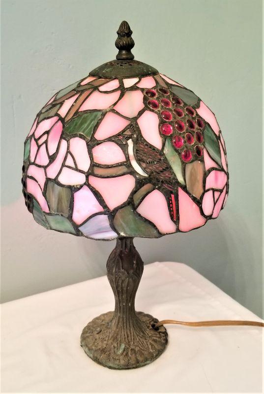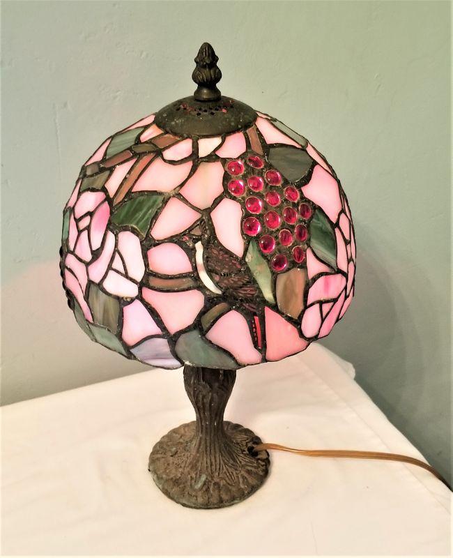This cute contemporary table lamp features a Cardinal and bunches of glass "grapes." Good working condition, 15" tall, switch on cord.
